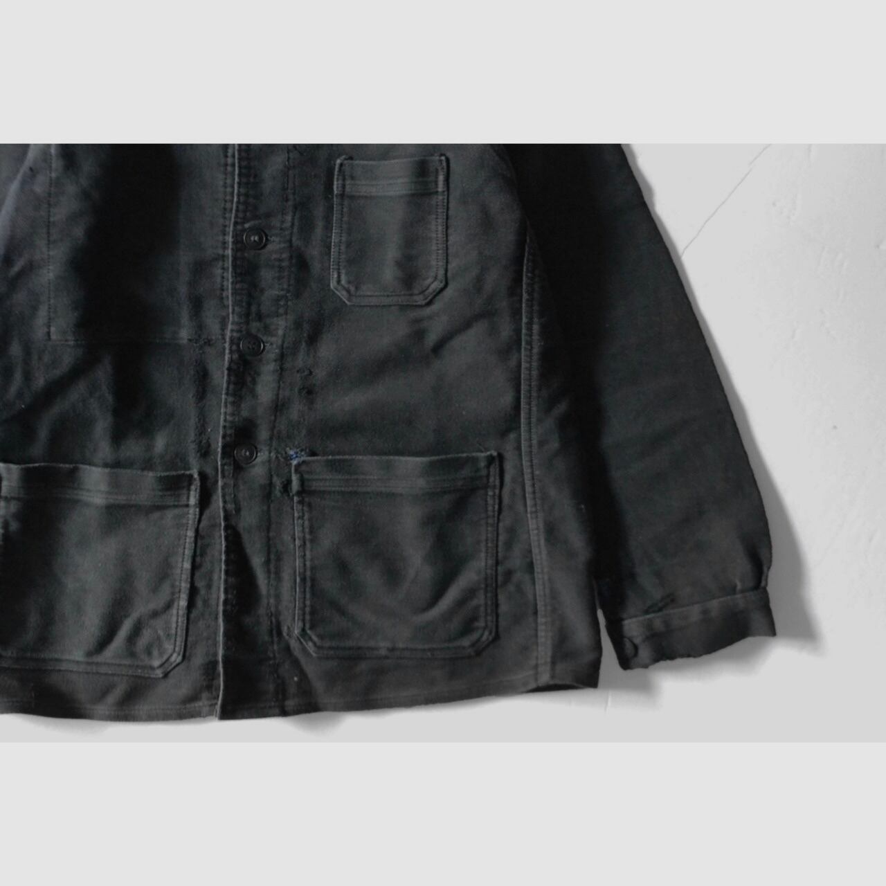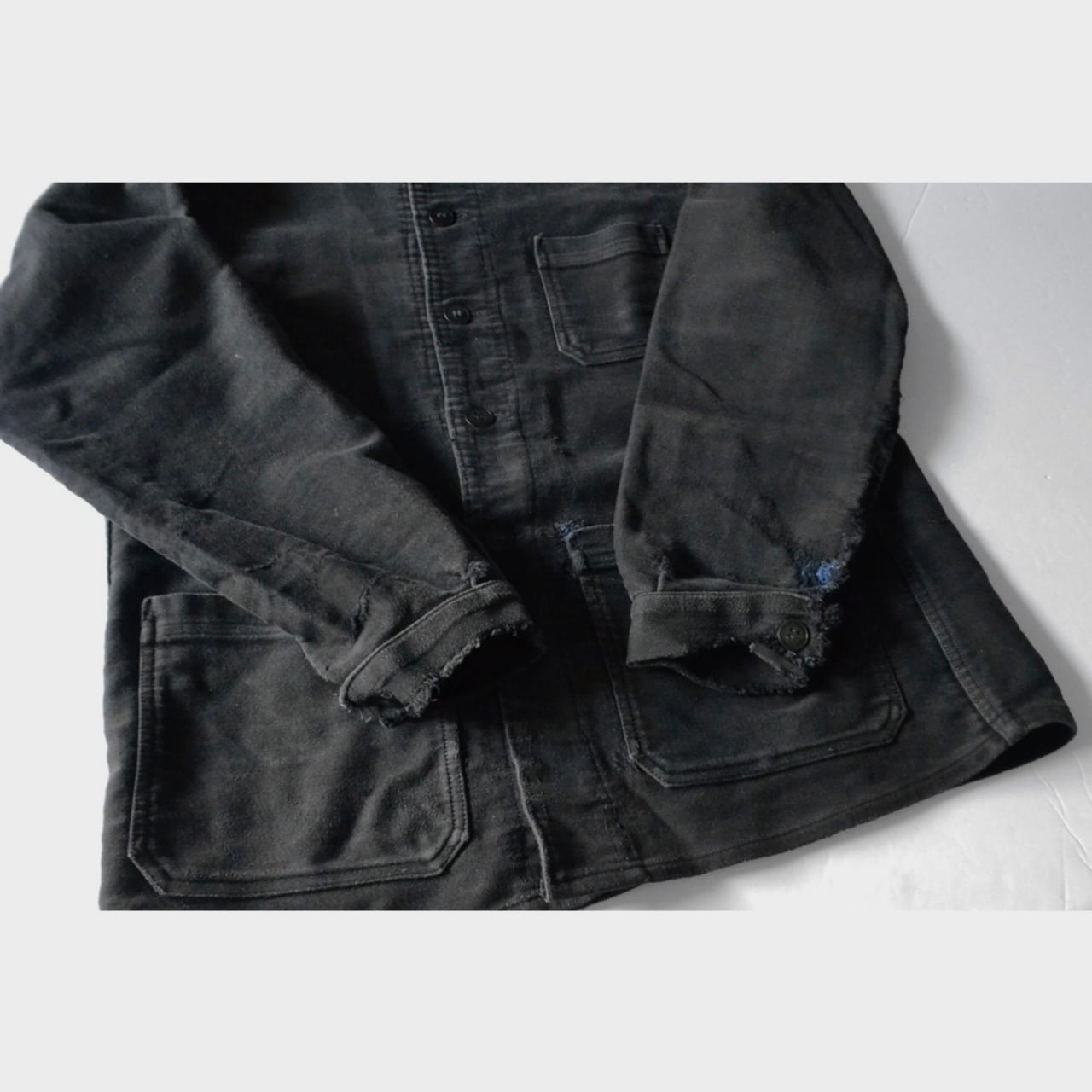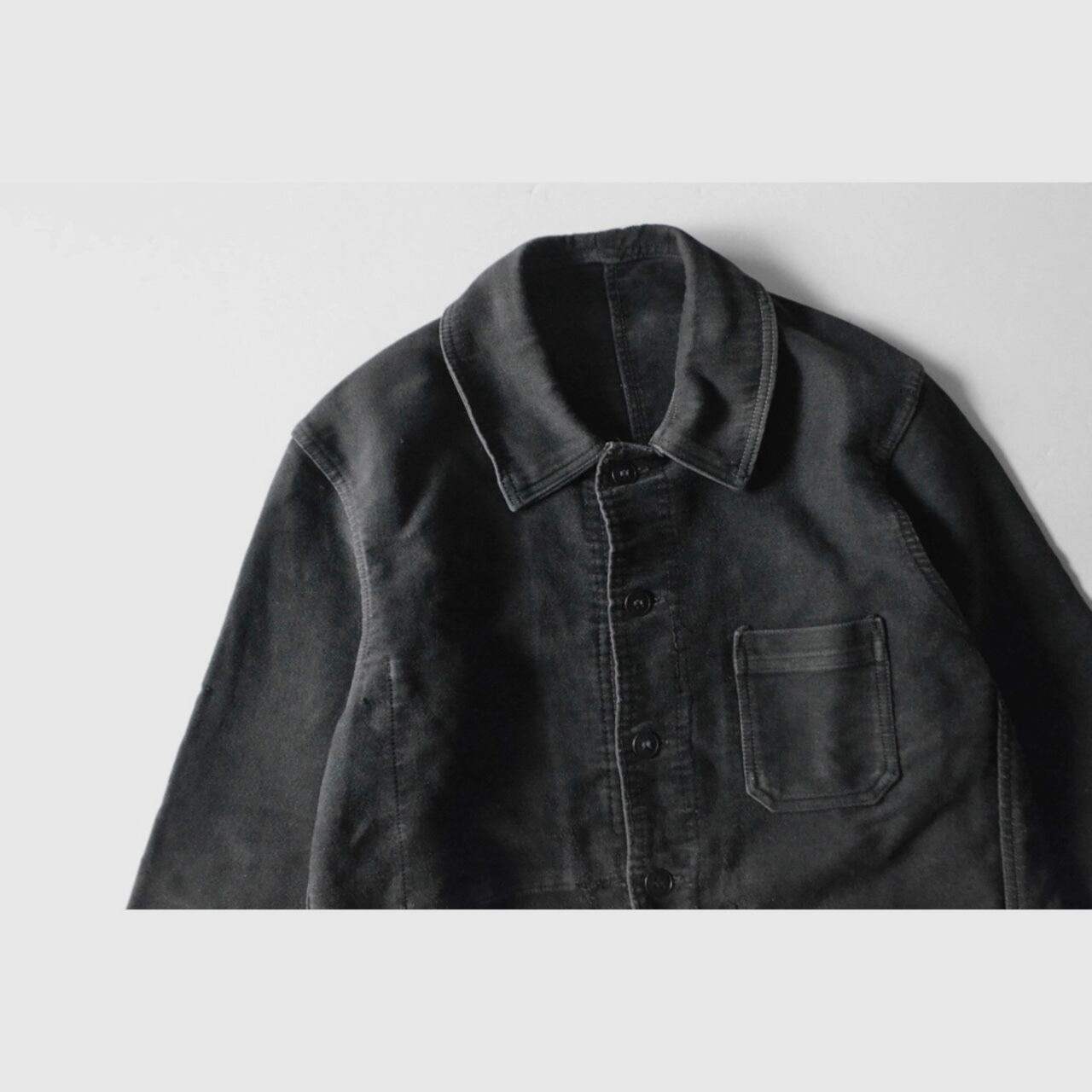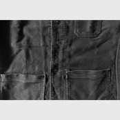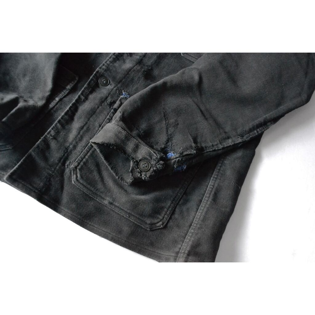 着用と洗いを繰り返して味のあるフェード感、クタっとした柔らかいモールスキンの生地感が出た1着。内側の胸ポケットのタグはプリントです。