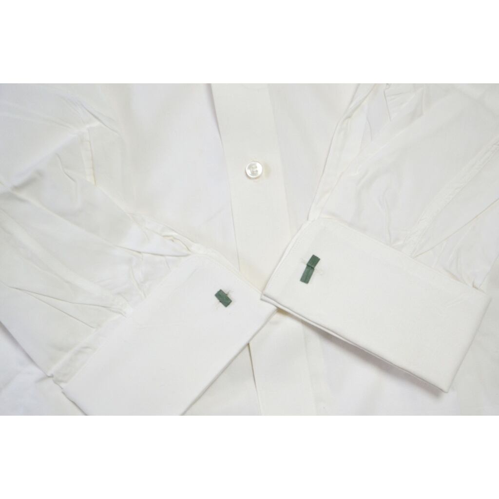 マチ付きのダブルカフス仕様。ロングポイントで鋭角な襟。