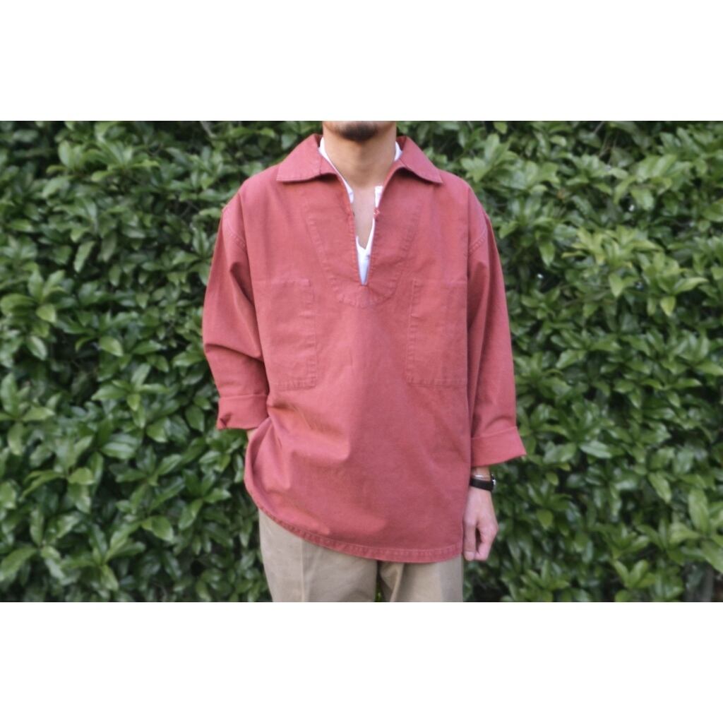 国によって様々な形のもが存在しますが、フランスのフィッシャーマンスモックは大きく胸元が開いたスキッパーのようなデザインが特徴です。