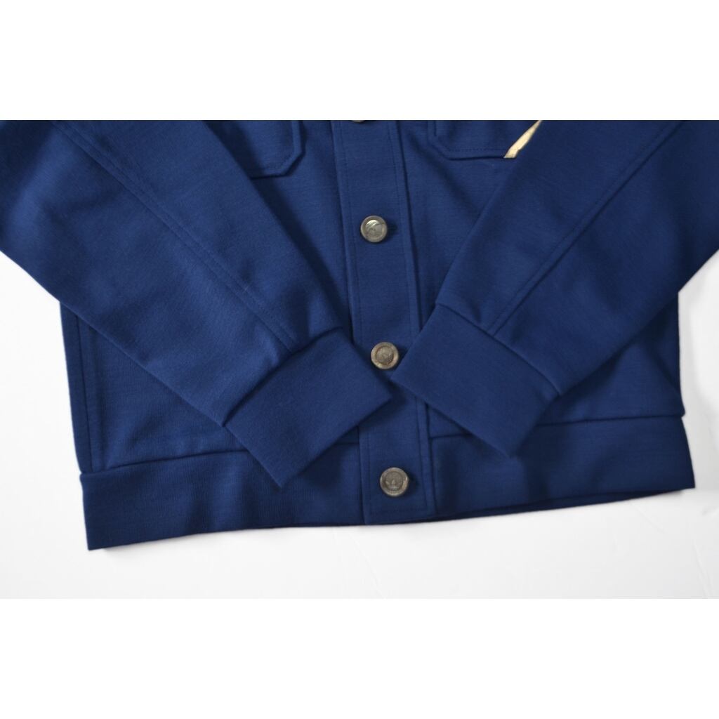 両胸フラップポケット付き、直線的な形で、ブルゾンのような雰囲気の1着。生地はやや厚手のアクリルとウールの棍棒素材。