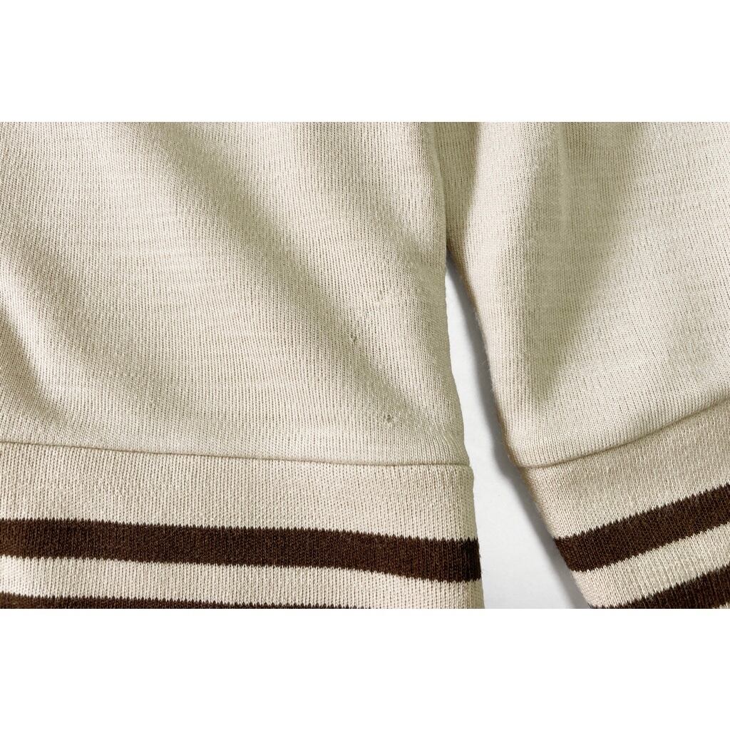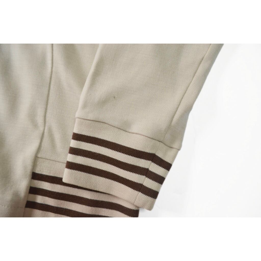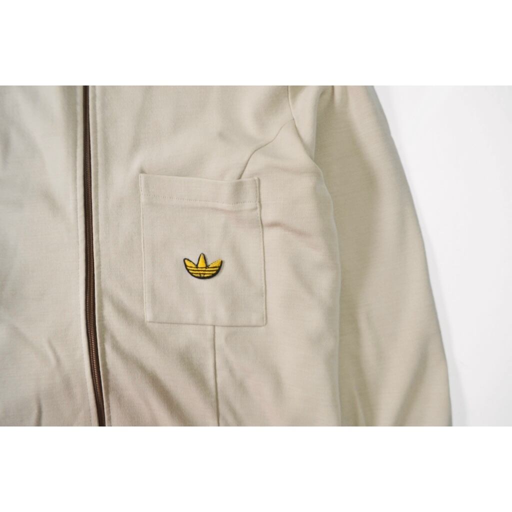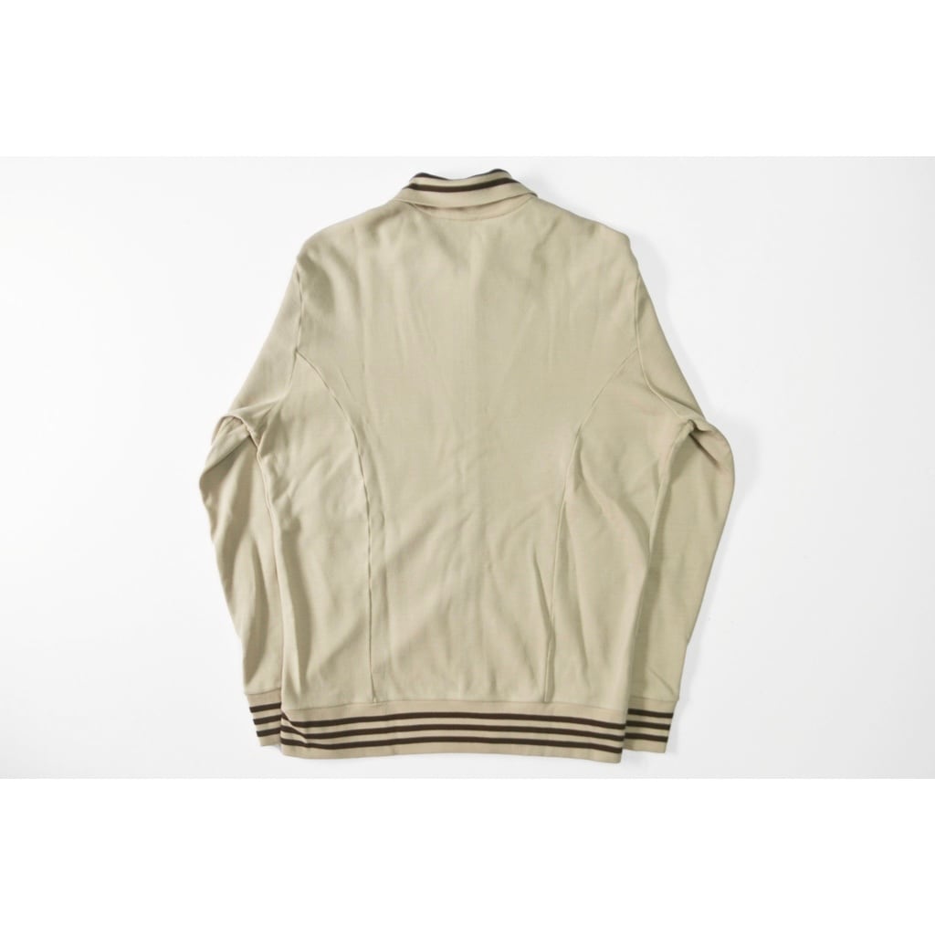 カラーはベージュ × ブラウン。胸のロゴはイエロー。襟が付くとジャージ感が抜けて、グッとファッションに落としやすくなるかと思います。