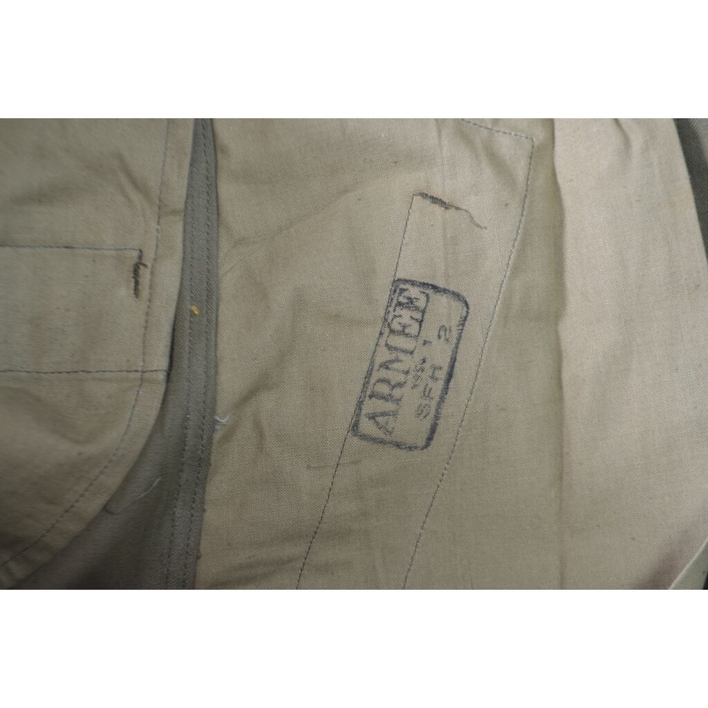 こちらはトップボタンがダブル仕様、生地はヘリンボン織りのコットンが使用された「移行期」と呼ばれる個体です。