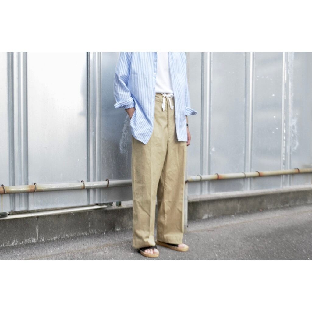 太めのドロコードが良いアクセントとなり、トップスをインして履いた時に程よいリラックス感を出してくれます。