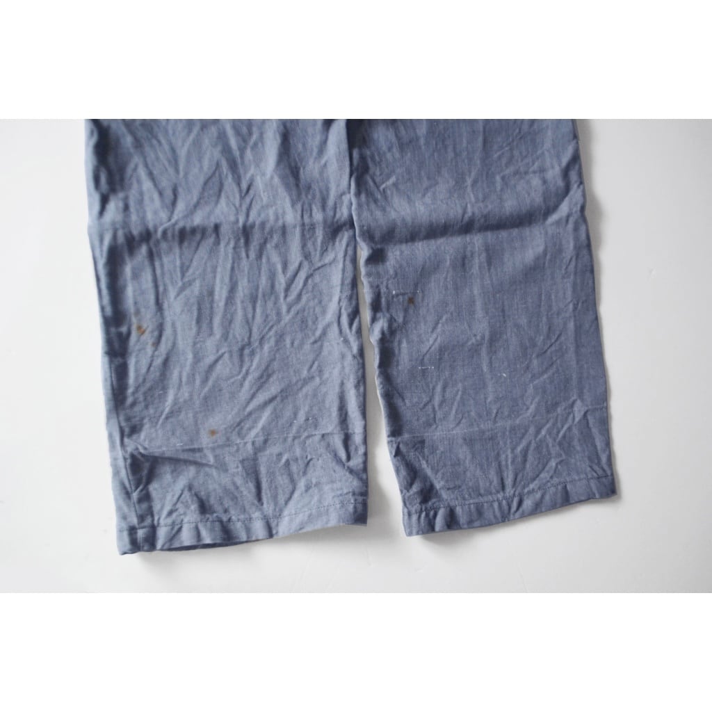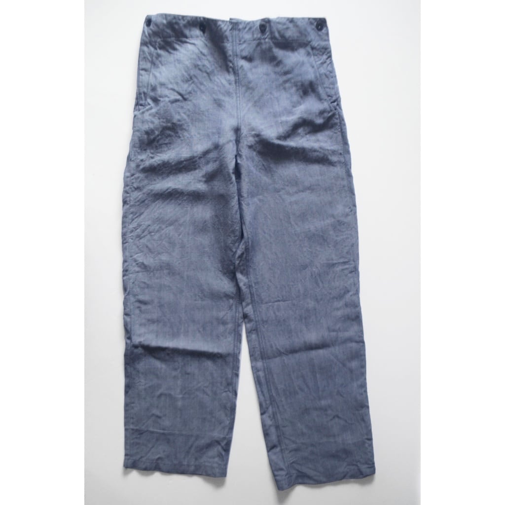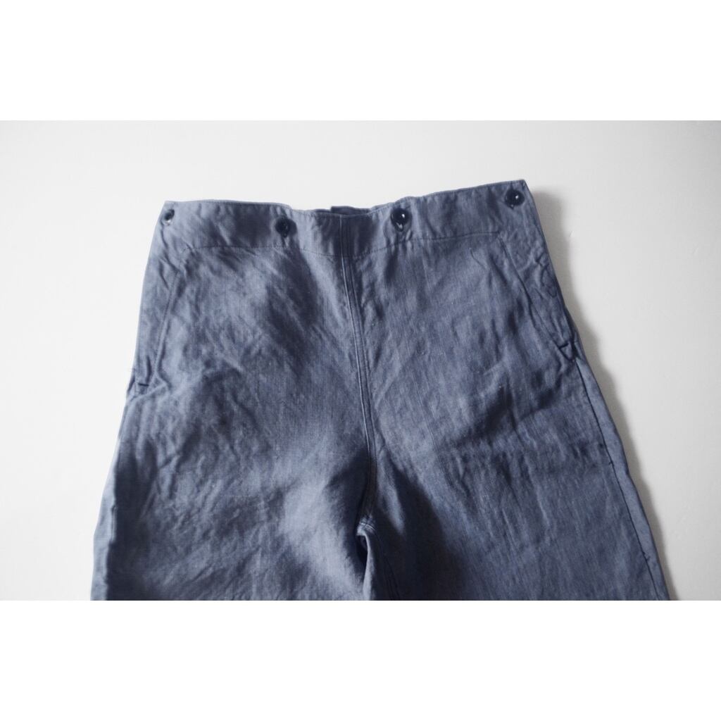 フロントはボタン留めで大きく開くセーラーパンツ特有の仕様。左右のポケットにウオッチポケット、ウエストにベルトループがついています。
