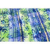 グリーン、ブルー、イエローを基調とした夏らしい花柄の一着。薄手のコットン100で、涼しげな生地感です。