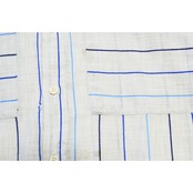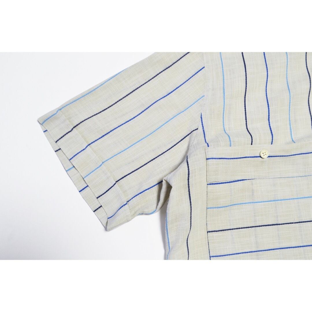 ネイビー、ブルー、ライトブルーのストライプが、刺繍で入ります。