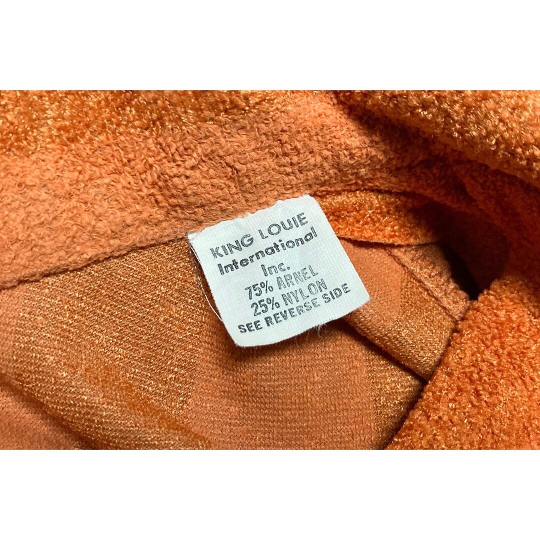 アセテートとナイロンの棍棒で、珍しいパイル地。ストライプ状に織られたオレンジカラーです。