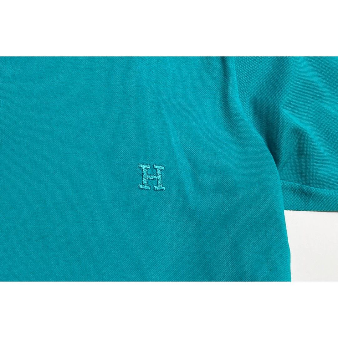 色味はターコイズブルーカラー。左胸にHの刺繍入り。