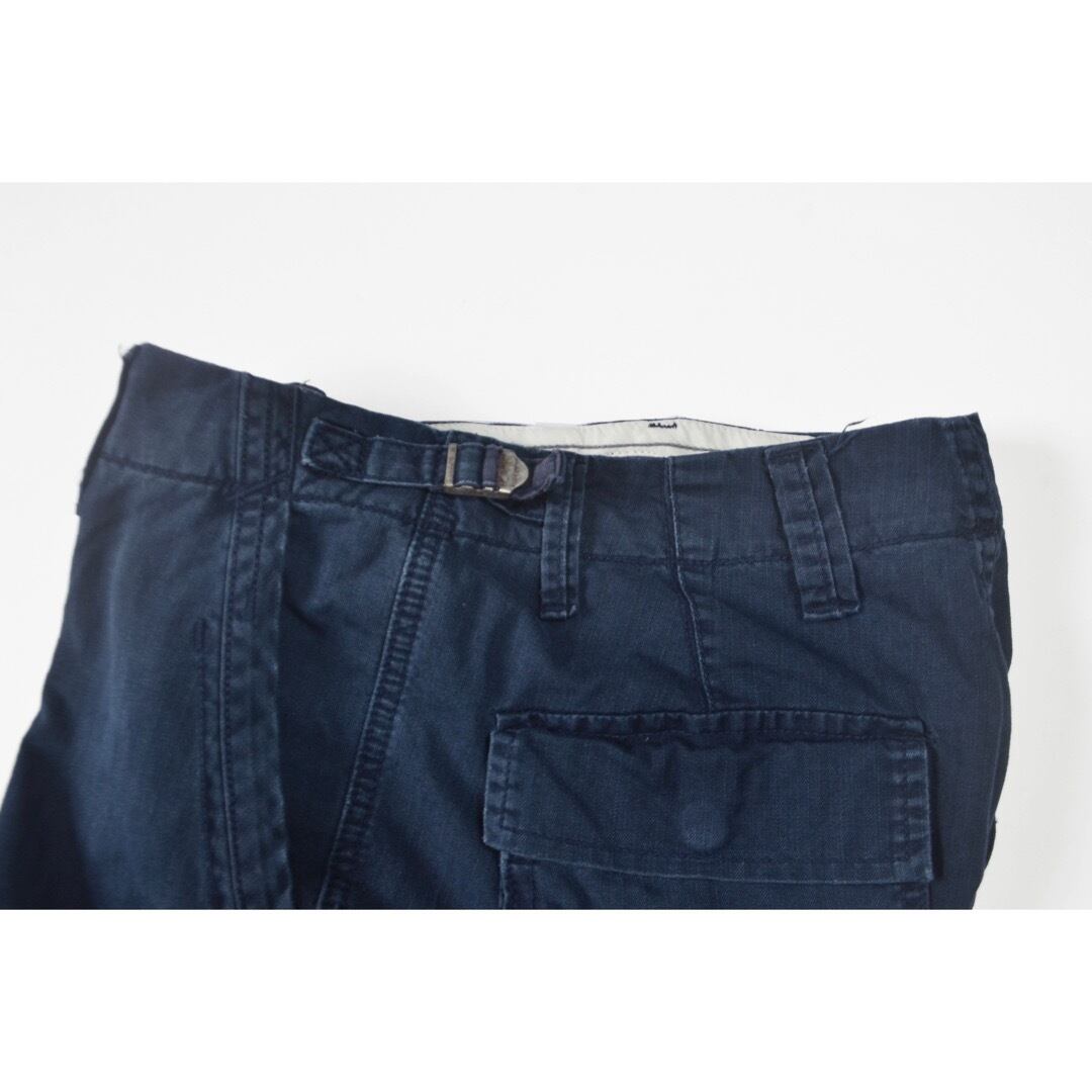 生地は質感の良いネイビーのコットンヘリンボーン。サイドアジャスター、刻印入りのメタルボタン、フロントのスラッシュポケット、動いやすさを確保する膝のタック、マチ付きの大きめの片側カーゴポケット、内側に配された裾アジャスターなどなど。これだけのヴィンテージライクなディテールが詰まったパンツも中々無いと思います。