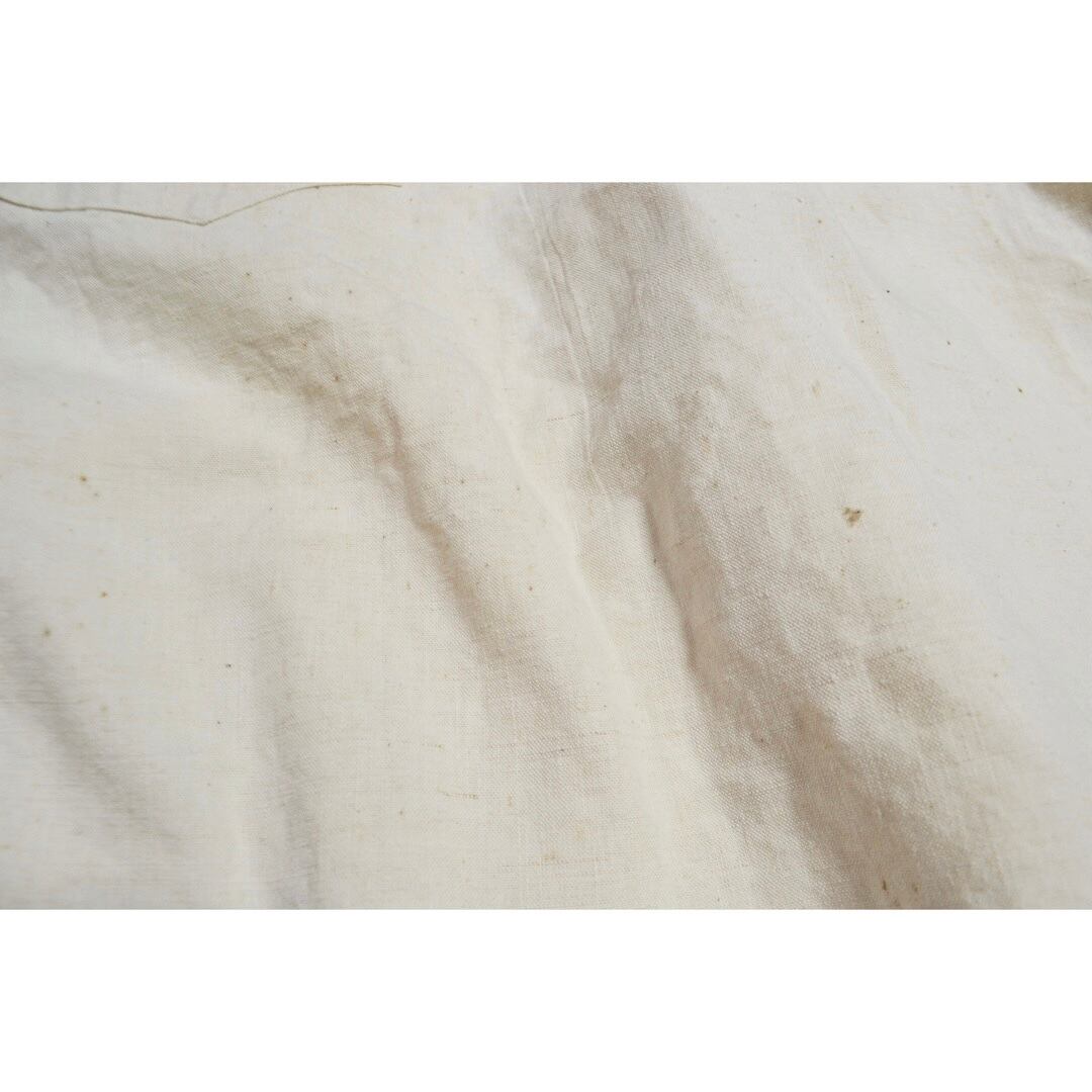 生地は少し粗さのあるリネン素材。見た目にも優しい生成り色とリネンならではの素材感、特徴のあるディテール共に上手くマッチした一着だと思います。