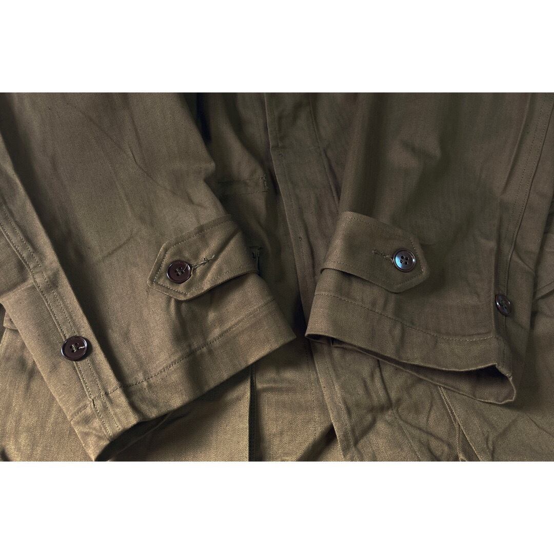 後期タイプはパンツ同様にヘリンボーン生地。前期タイプより更にブラウンががった独特なオリーブカラーです。