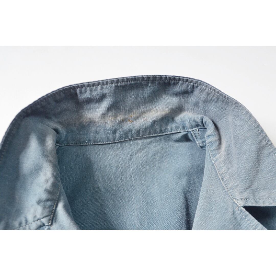 生地はガサっとした丈夫なコットン地で、フェードしたブルーカラー。
