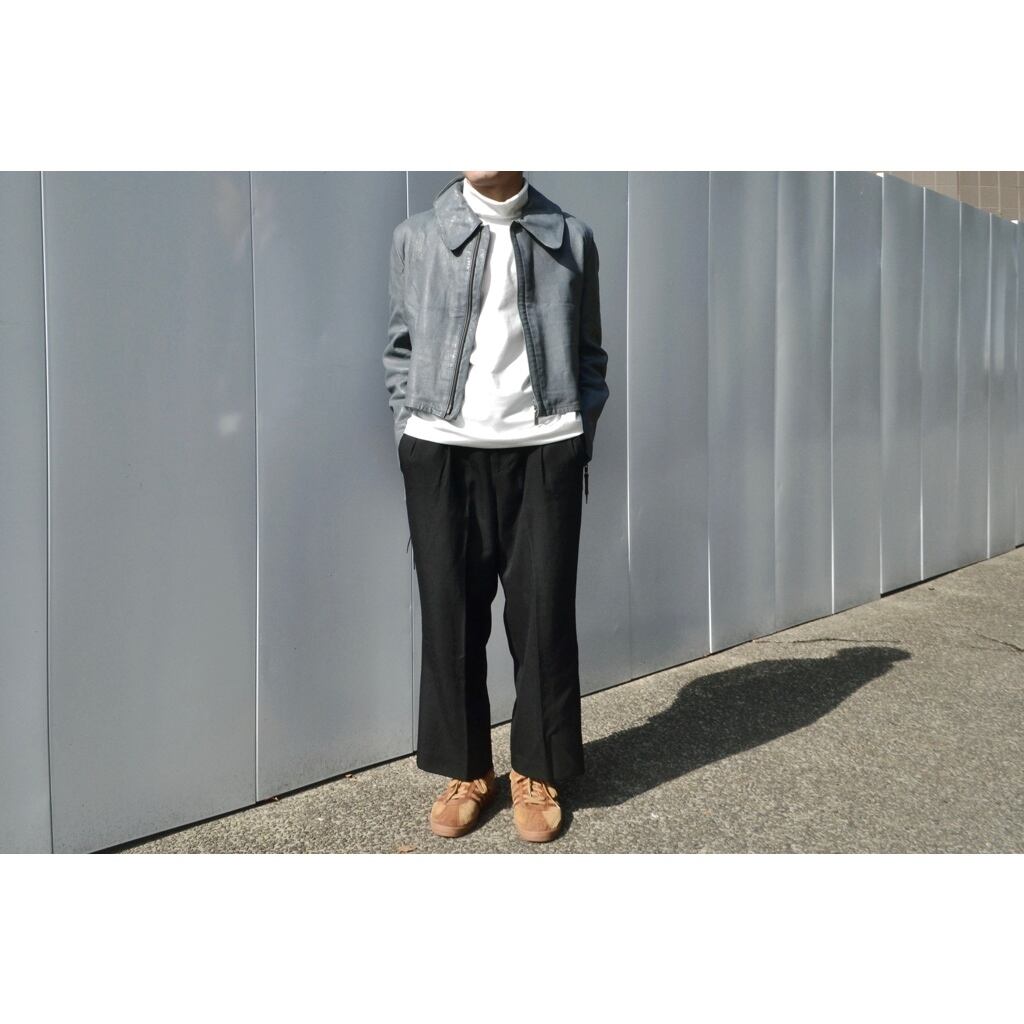 無機質なグレーカラーに、身幅は広めでショート丈。