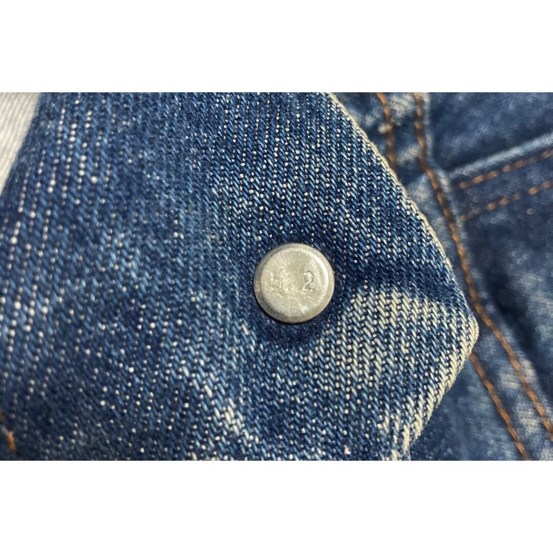 首元や袖先に汚れ。全体的に着用感がございます。糊の硬さは取れてますが、良い風合い自然な色落ちが魅力です。