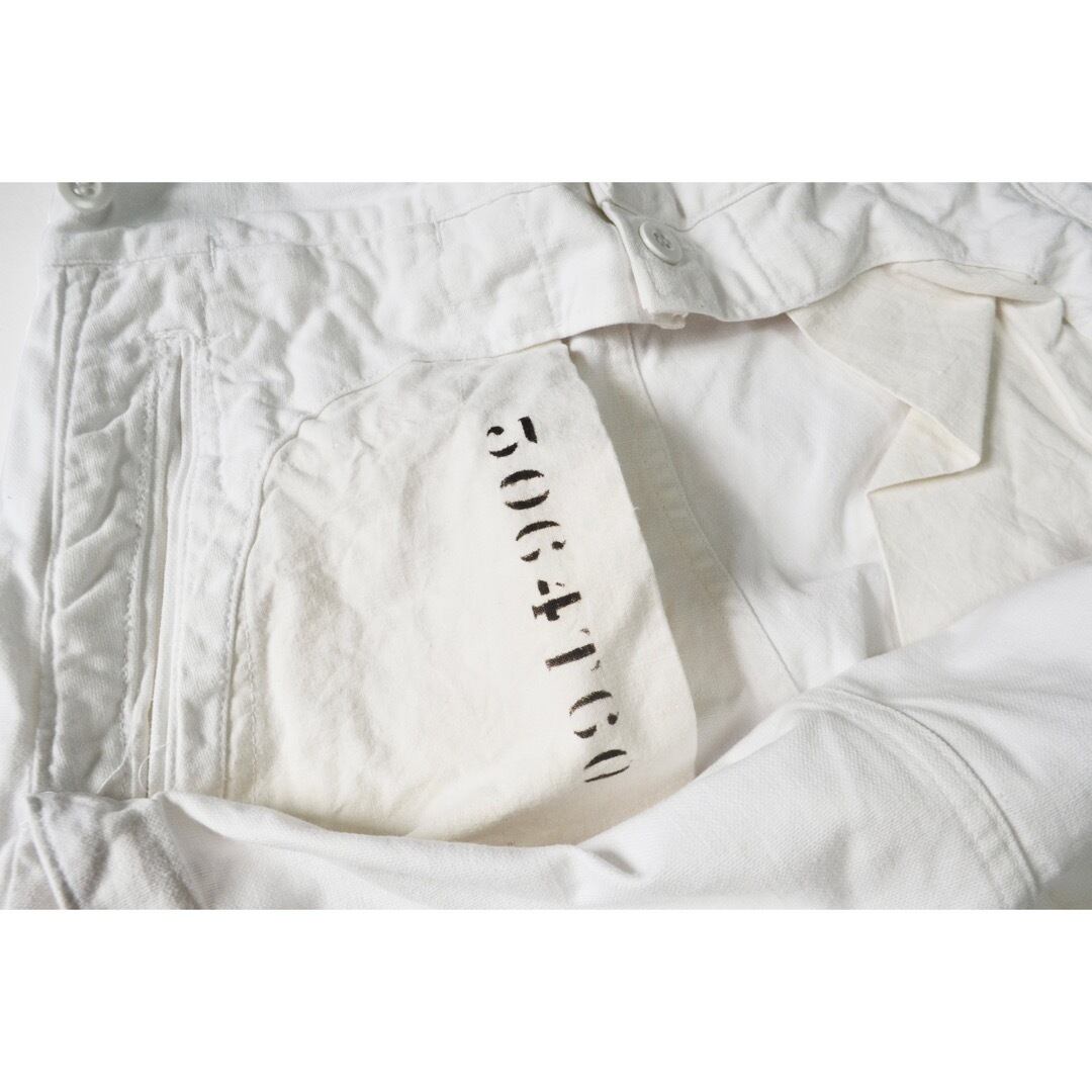 平織のしっかりとしたコットン素材にホワイトカラー。オーセンティックなセーラーパンツの形になります。
