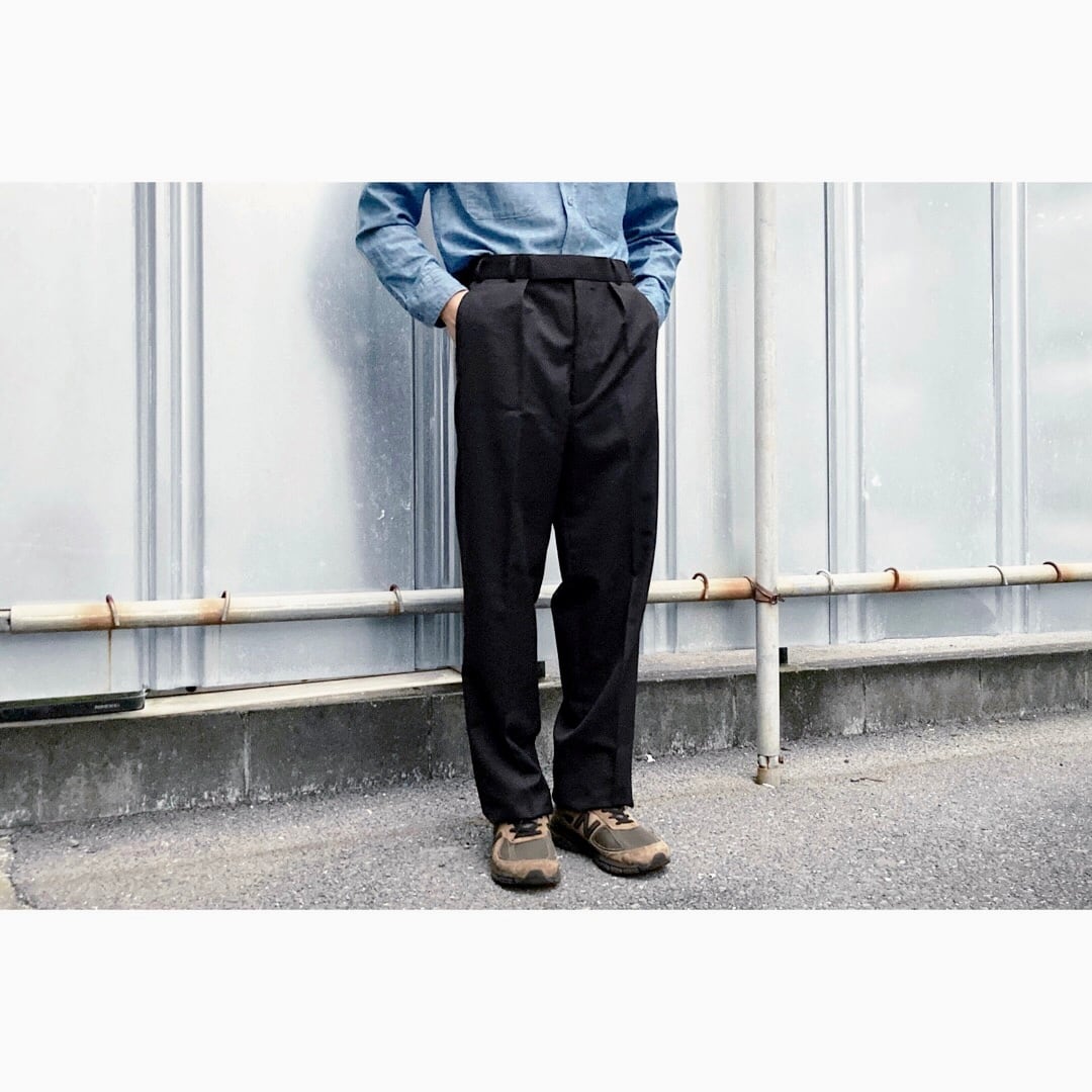 ミリタリーとしては珍しいブラックカラーで、サラッとしたウールとポリエステルの棍棒素材。幅広いシーズン着用いただけます。