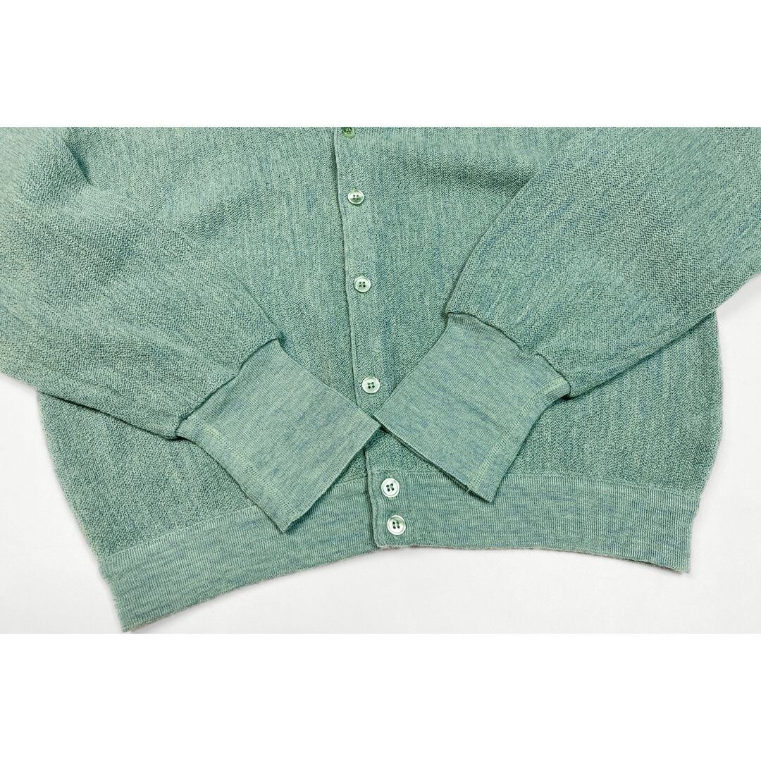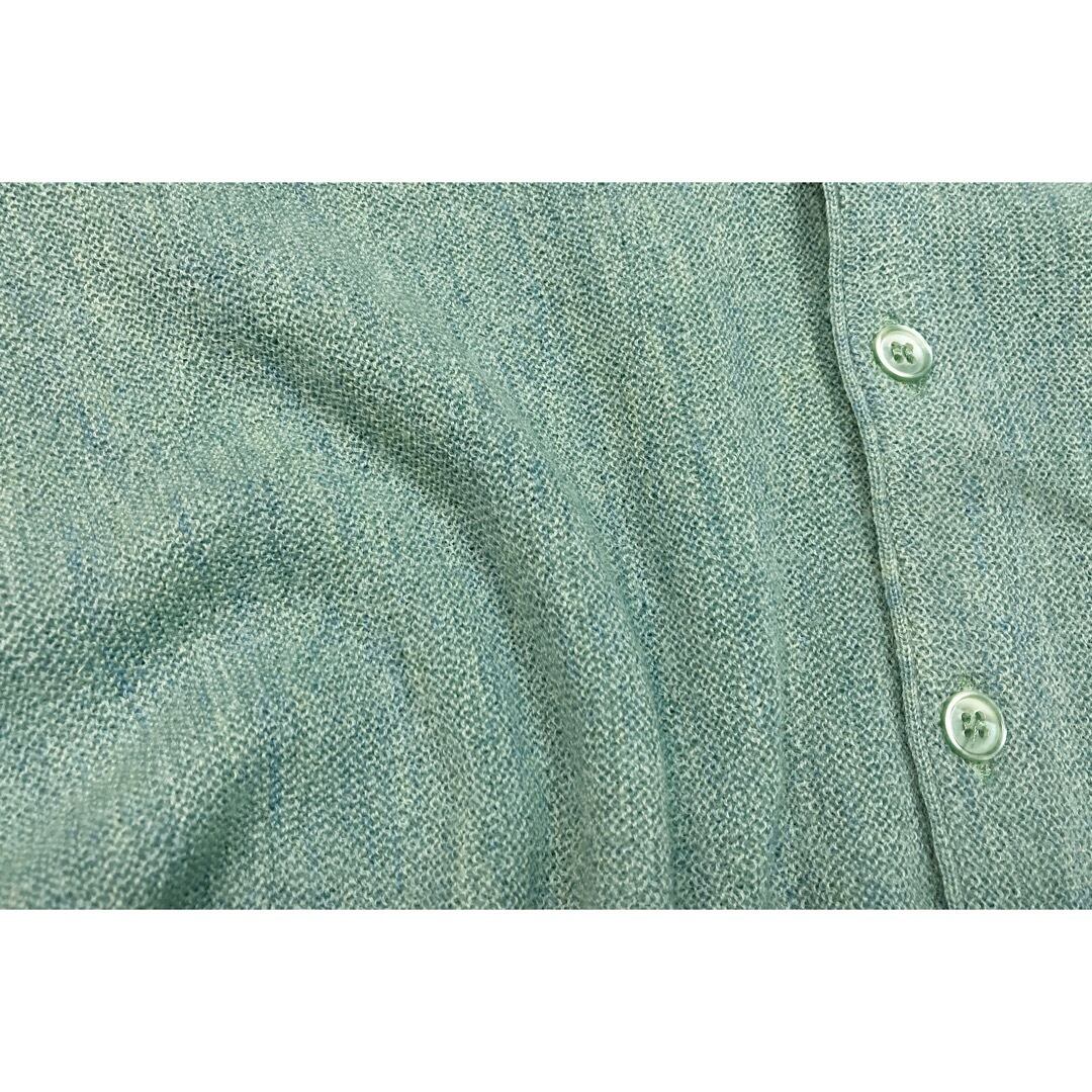 ウール100で、2色の糸を使ったミックス織り。フランス製らしいエメラルド〜ターコイズ系のカラーです。替えボタン付き。