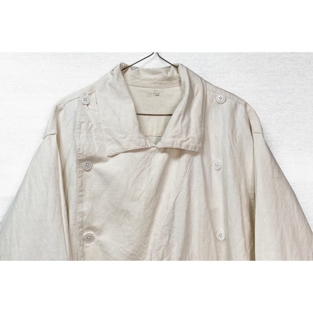 ダブルでロング丈とモードな雰囲気も漂いますが、優しい生成りカラーやドローコードのおかげで纏まりやすいと思います。見頃が大きめなので、冬場にはオーバーコートとしても。