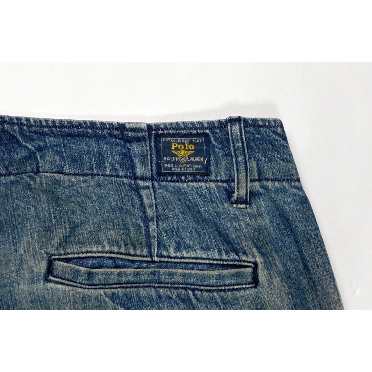 コインポケットに、両サイド斜めポケット、メタルボタン仕様。ラルフローレン得意のヴィンテージ加工など雰囲気抜群の一本です。