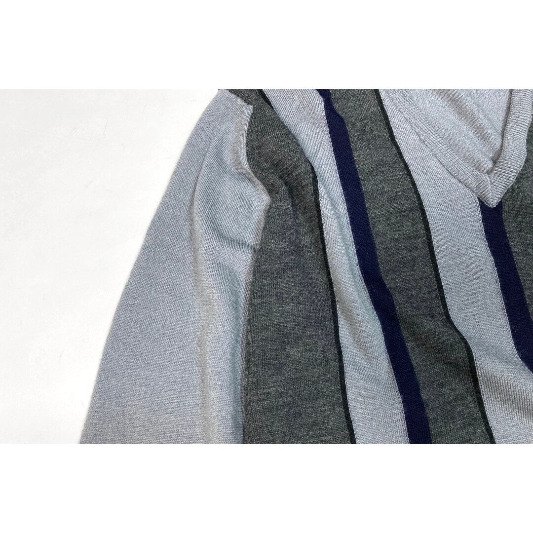 ブルーグレー系のカラーを基調にチャコールグレー、ネイビー等のボーダー柄。パターン的にも珍しいのでいかがでしょうか。