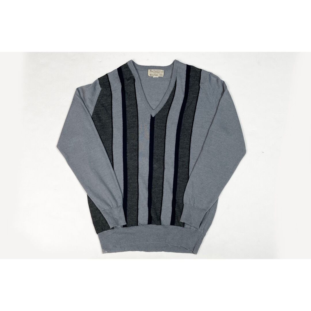 ジョンスメドレーの古いタグが付くVネックセーターになります。軽くて暖かいピュアニューウールを使用。