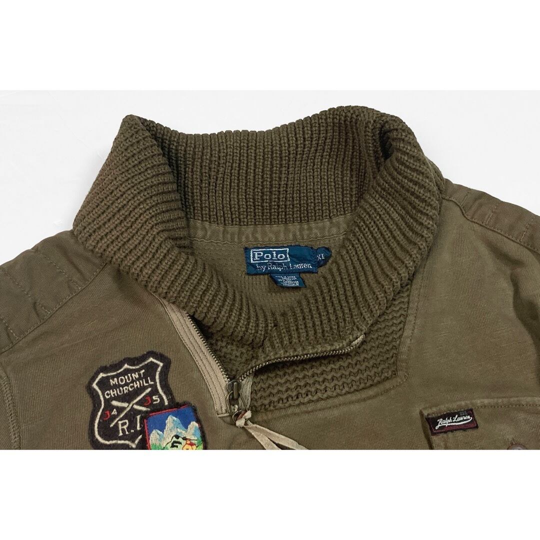 肩や膝下のパッチデザイン、雰囲気のあるワッペンのデザインなどラルフローレンらしさが詰まった一着です。