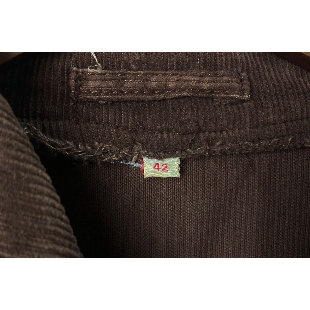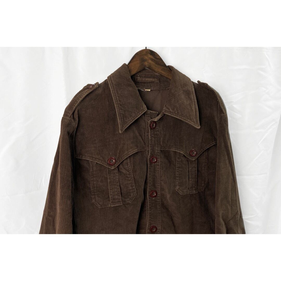 サファリスタイルで、ブラウンコーデュロイ、丸みのある大きめなボタンが雰囲気の良い1着。