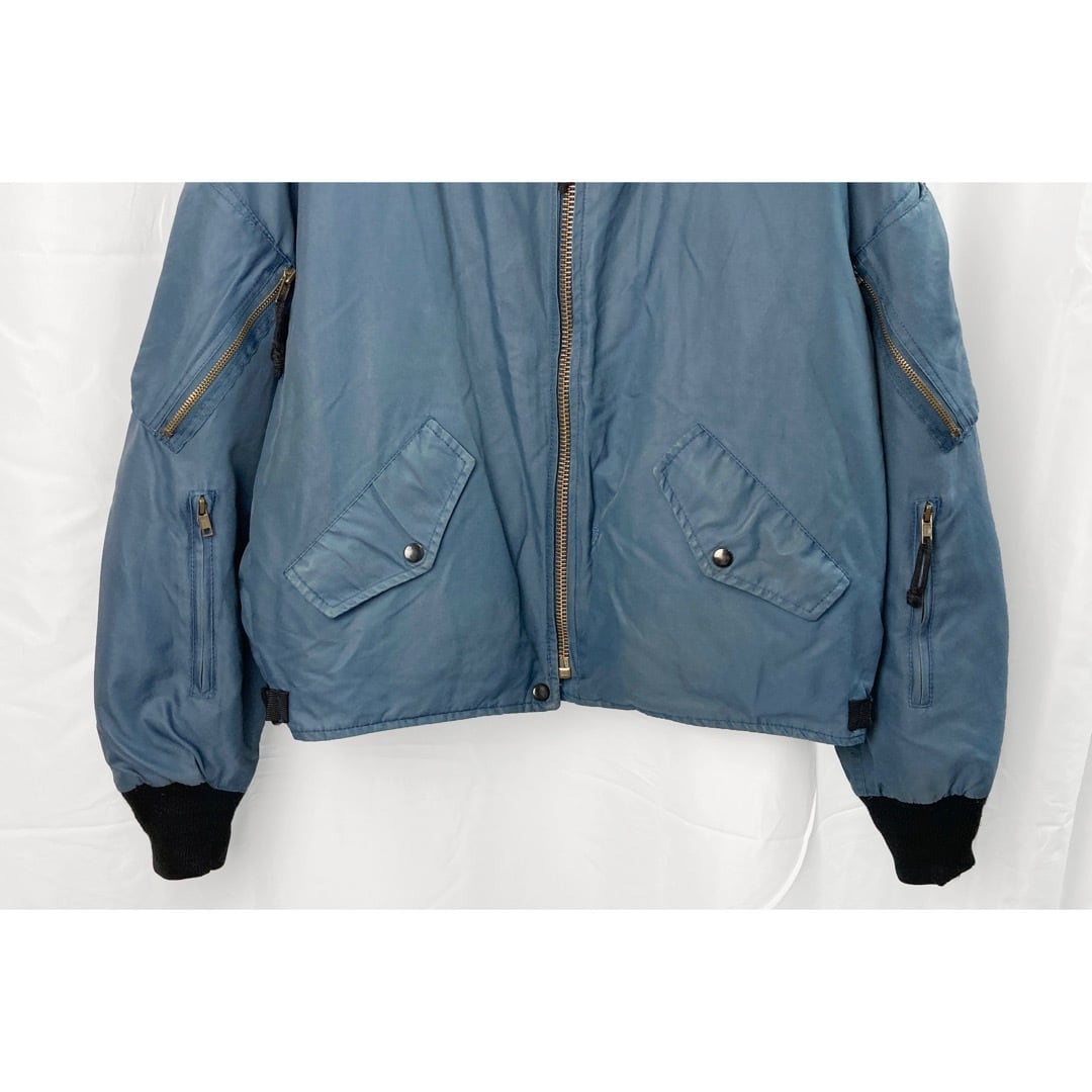 米軍のMA-1やL-2Bに近いディティールですが、裾にリブが無く淡いブルーカラーなので、よりファッション目線で着れる一着です。