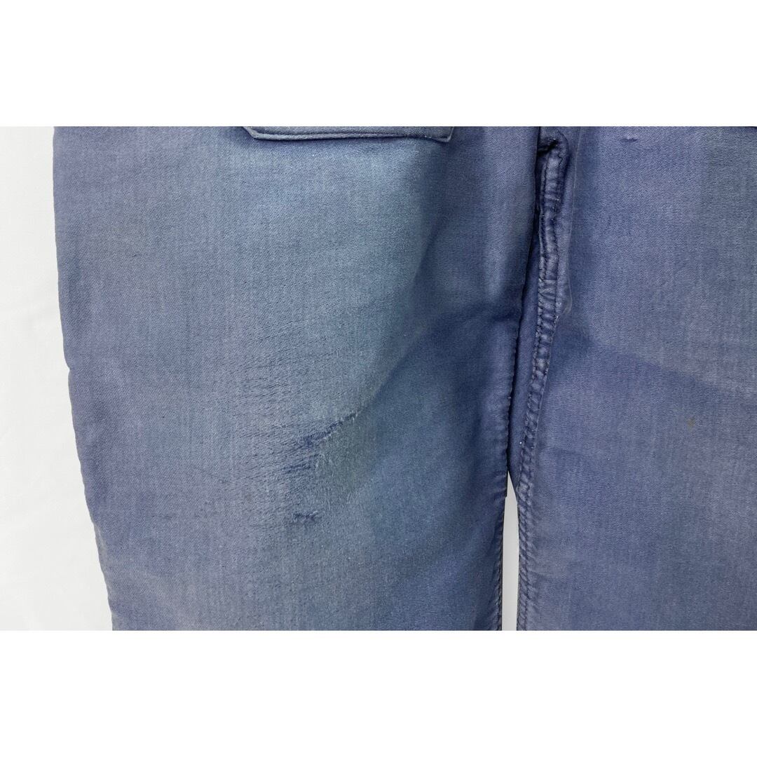 全体的な使用感や汚れ、褪色、膝等の破れやスレ、ボタンの錆。また、バックポケットのファスナーのスライダーが欠損しています。写真をよくご確認の上ご購入ください。