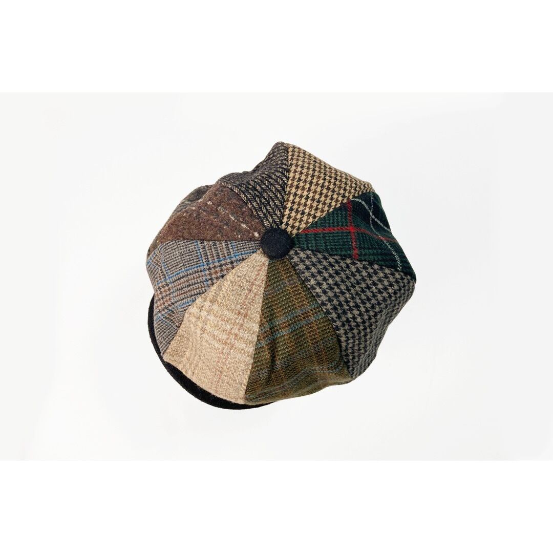 ウールと化繊の棍棒で、トラディショナルな柄が散りばめられ天ボタンの付いた8パネルのキャスケット。