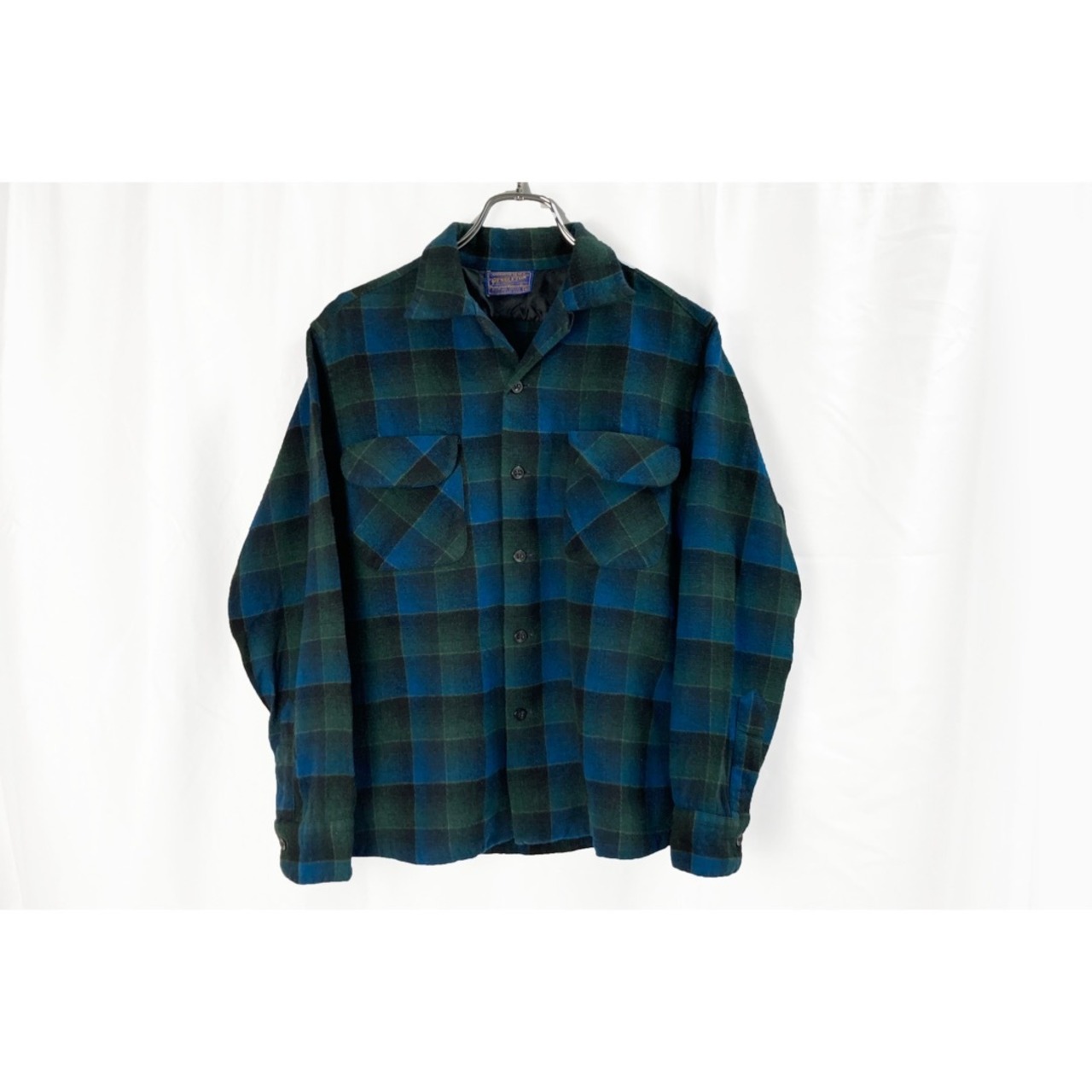 50年代のペンドルトンのウールシャツになります。青・緑・黒の好配色でボックスカットになります。
