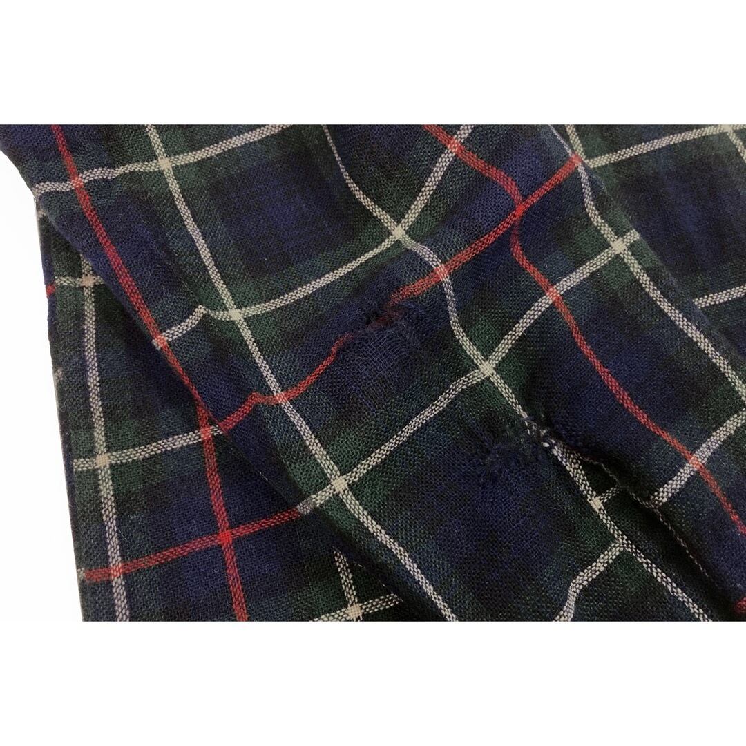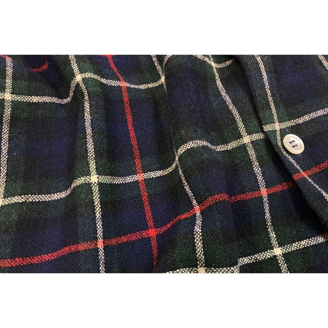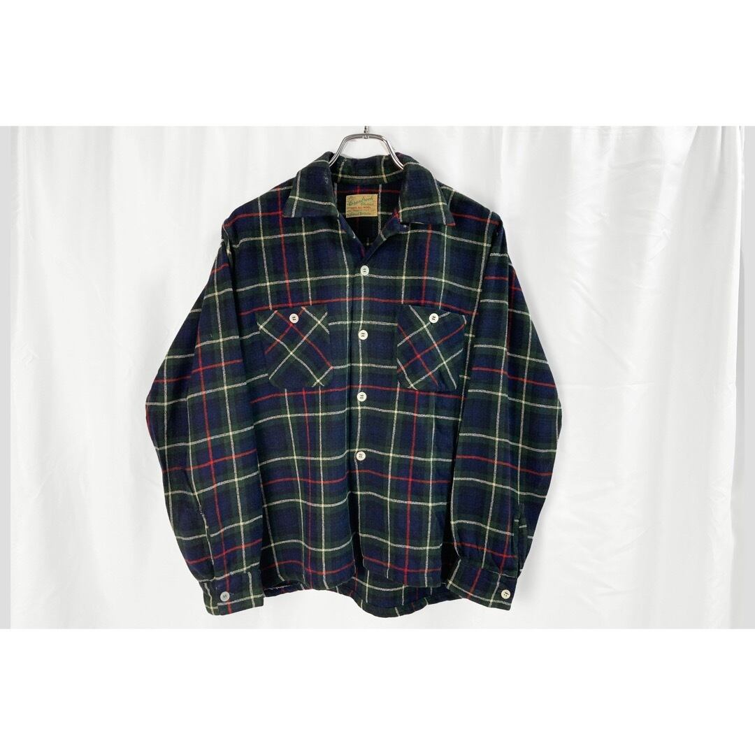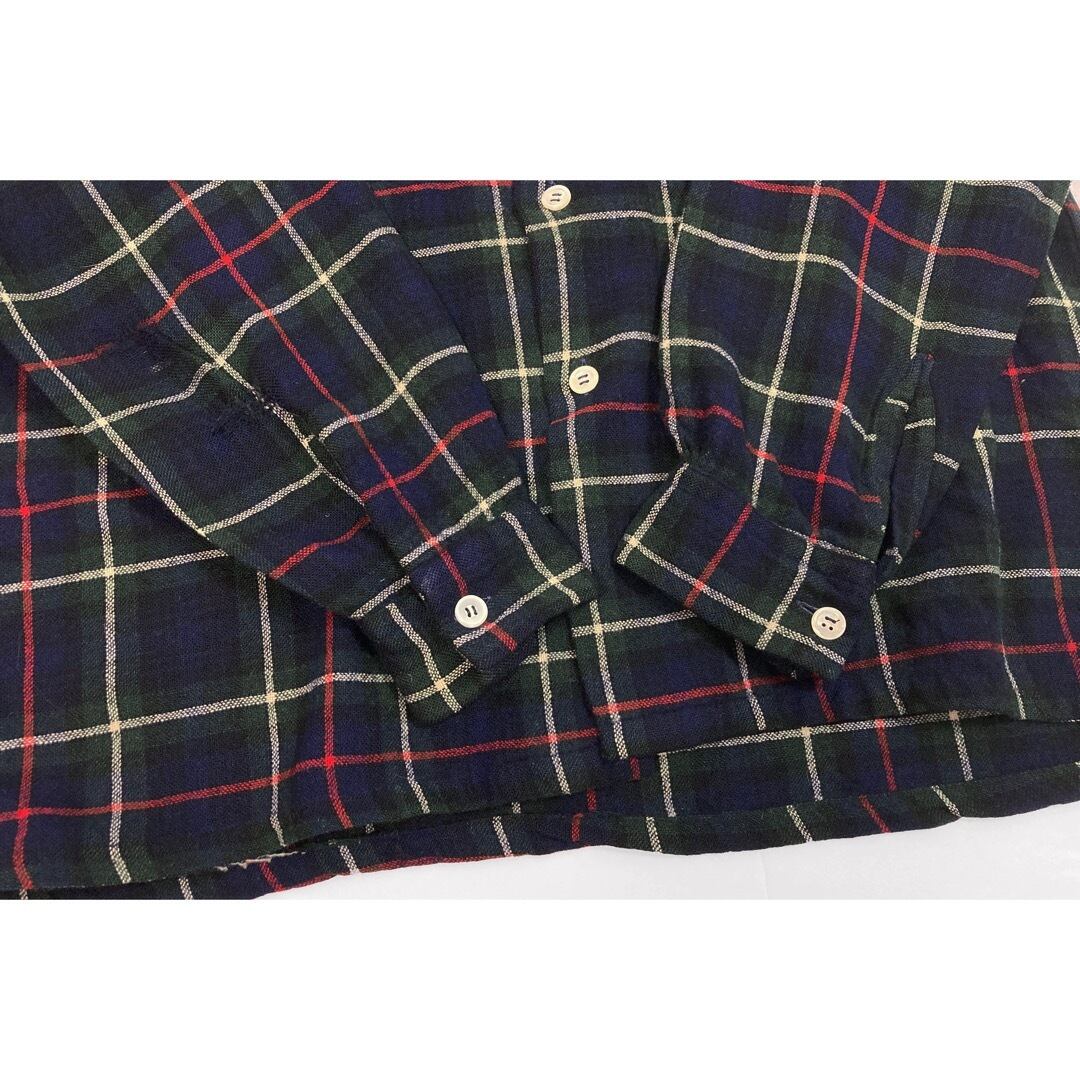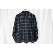 60年代頃のイギリス製のウールシャツになります。ベースは緑・紺・赤・白のマッケンジーチェックでボックスカットになります。