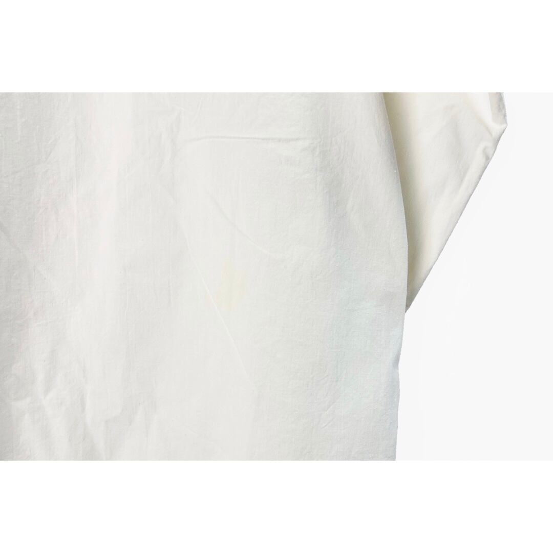 優しい印象のオフホワイトカラーにプルオーバー仕立てで、サイドスリットにマチ付き。
