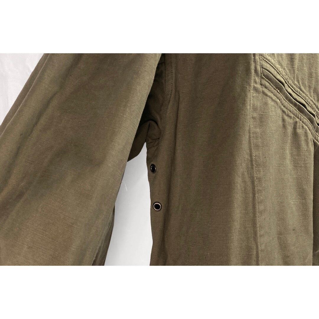 前合わせ、斜めに付いた胸ポケットはELLESS社のジッパーになり、カフスや裾のフラップには"MILITAIRES EQUIPMENTS"の刻印が入ったメタルボタンが使われています。