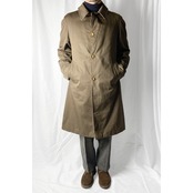 表地はブラウンベースのウールツイード、裏地はブラウン系コットン/ポリの両面使いやすいリバーシブルのバルマカンコート。