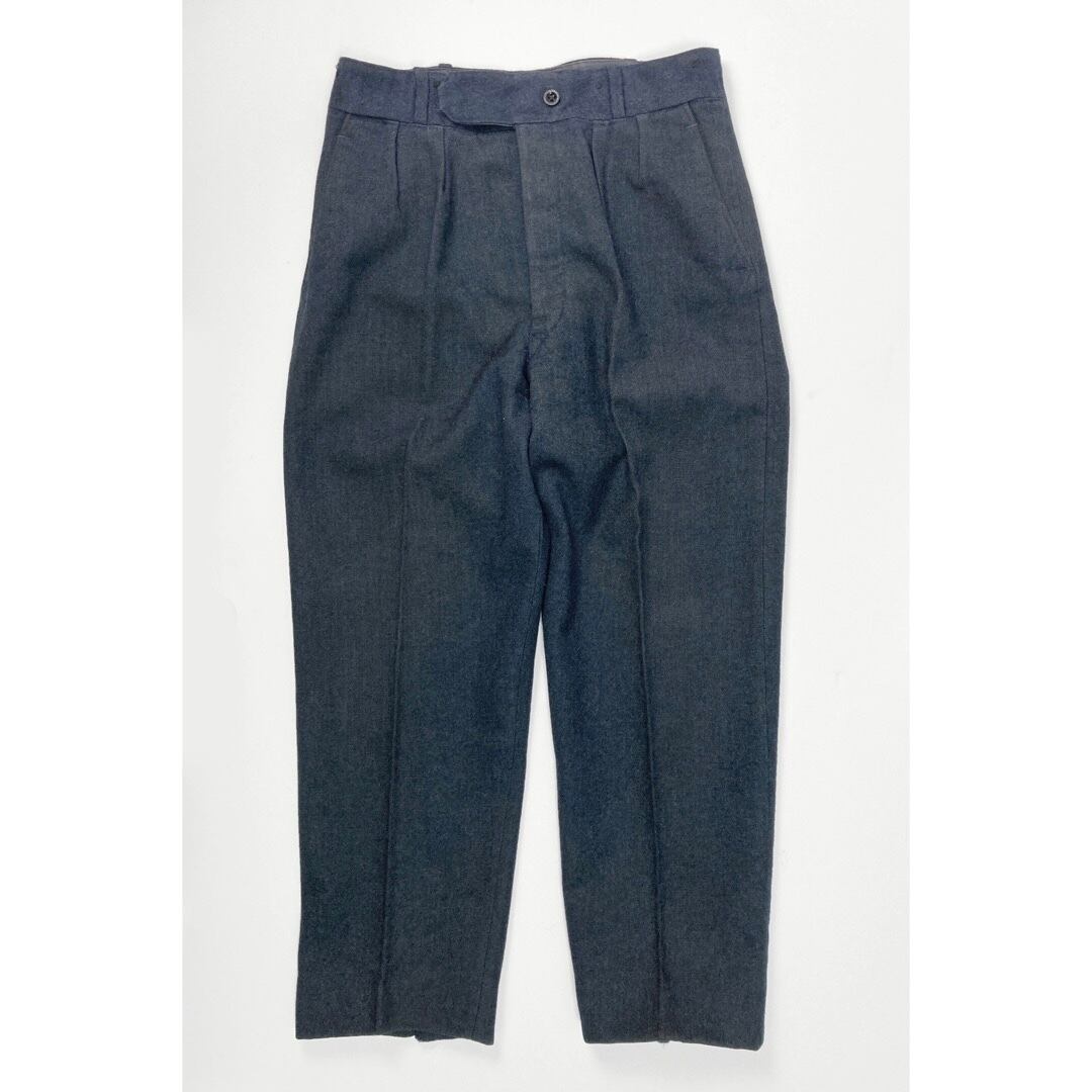 RAF特有のブルーグレーカラー、厚手のウール素材。フォーマルにもカジュアルにも、どちらでもいけそうな綺麗でワイドなテーパードシルエットです。