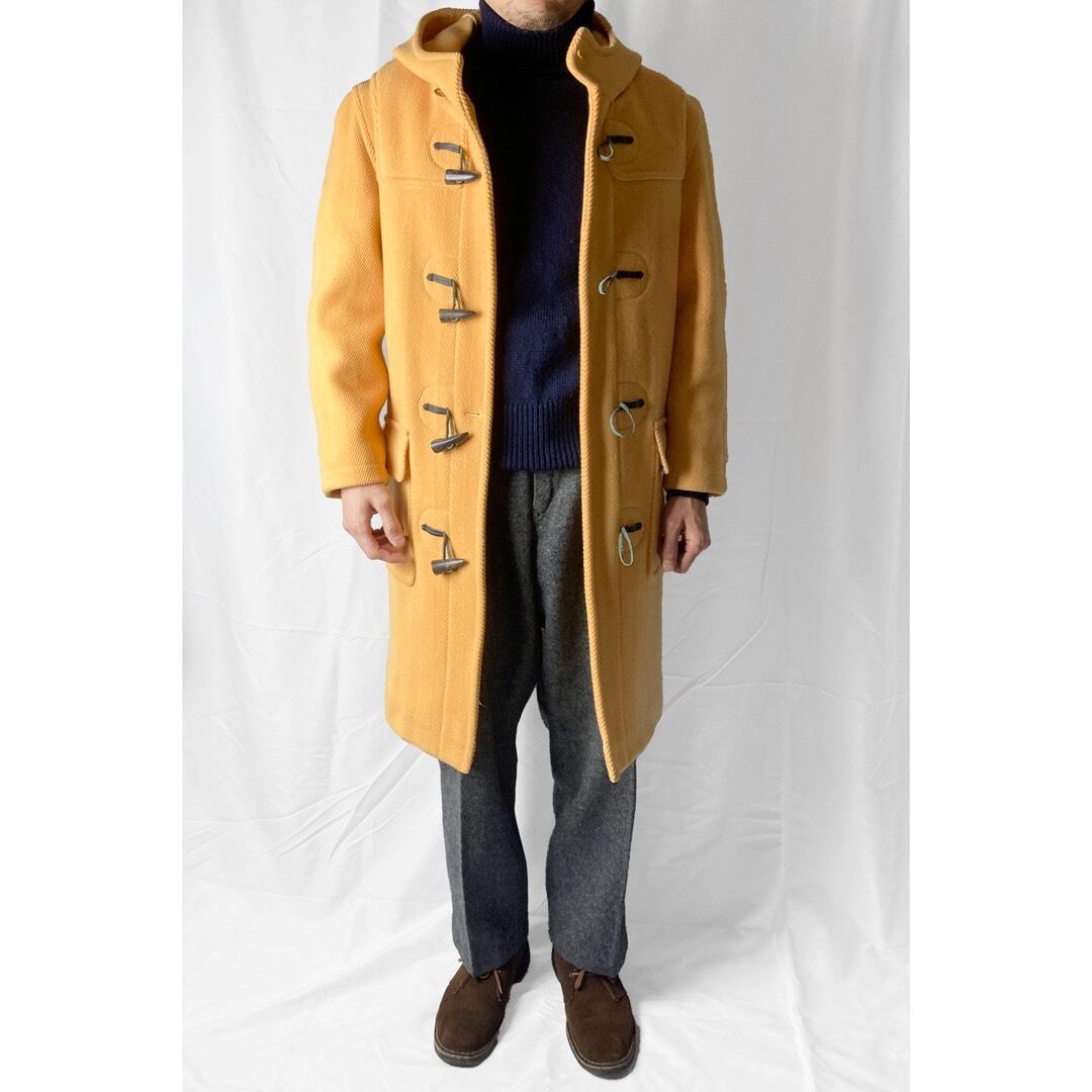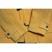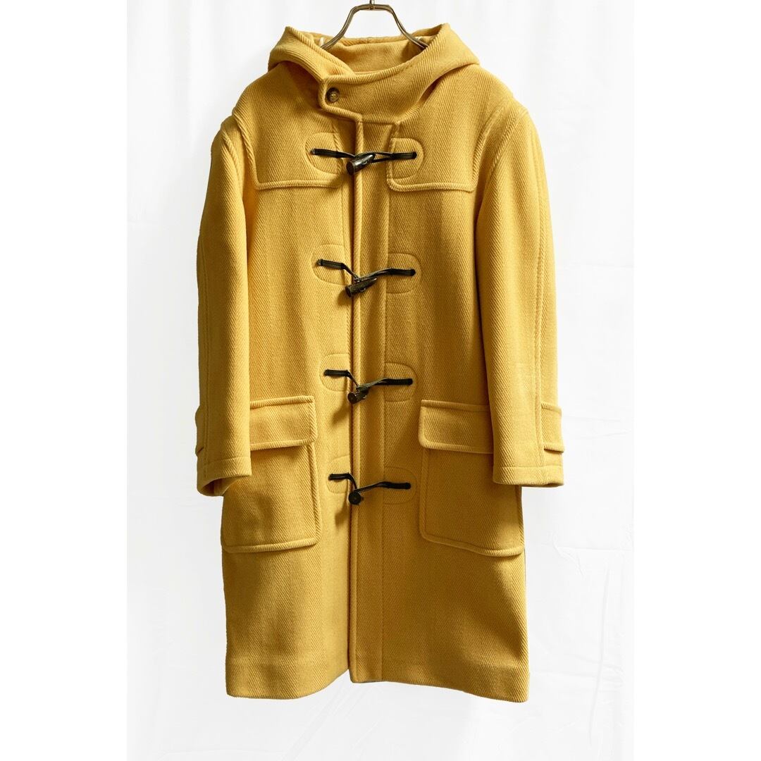 ウールヘリンボーンの生地感とポッテリしたトグルの合わせ。ダッフルコート全般で見ても珍しいイエロー〜マスタードカラーになります。