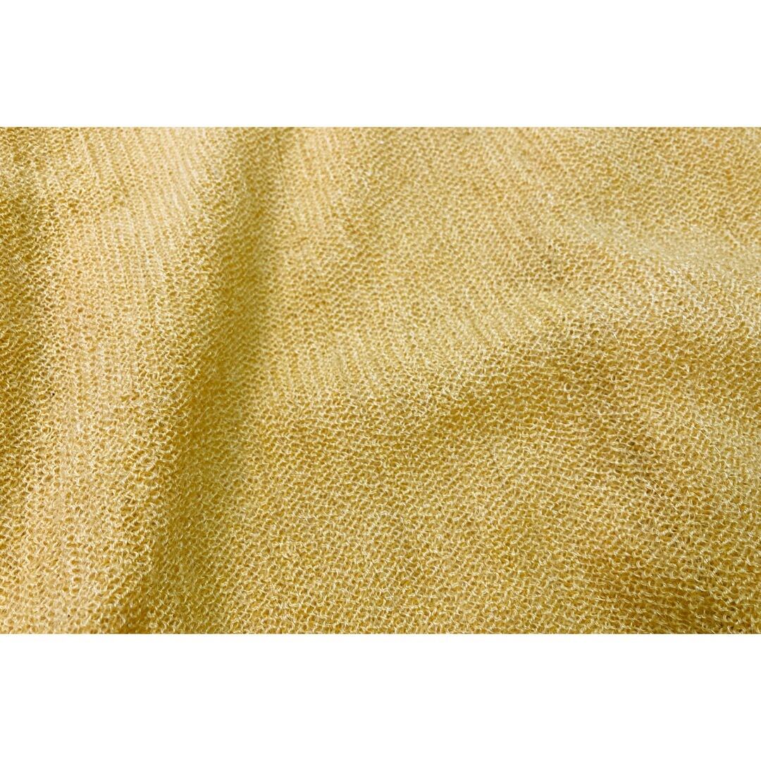 ニットはマスタードカラーのVirgin Mohairが75%