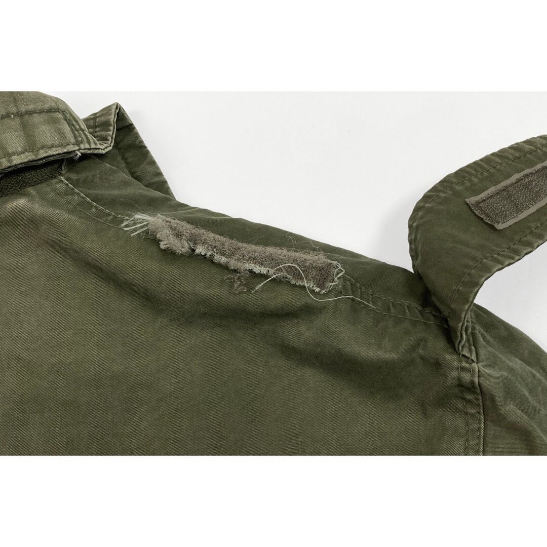 襟と右袖に汚れ。袖のマジックテープの劣化、糸の外れ。スレや薄汚れなど全体的に使用感があります。また、通常付属している裏張りのベルクロポケットは取り外されています。