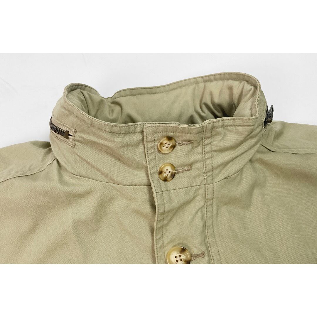 前立てや、袖先、左肘、首元等にシミや汚れあり。右サイドポケットの糸のはずれ。その他ややほつれ箇所がございます。写真をよくご確認の上ご購入ください。