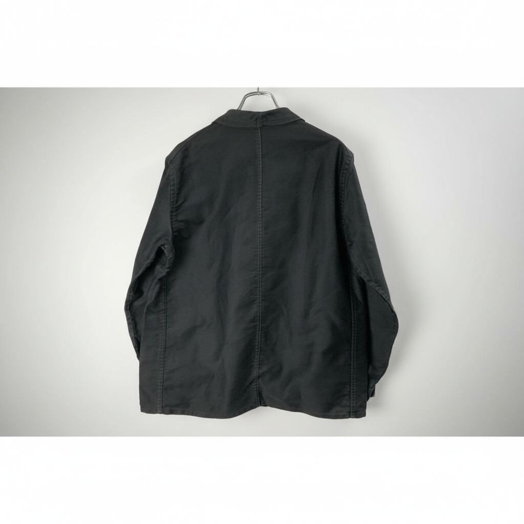角落ち型の形の良いポケット。まだ色濃く残る風合いの良いモールスキン生地。サイズも合う方が多いかと思いますので、是非ご検討ください。タグはプリントになります。