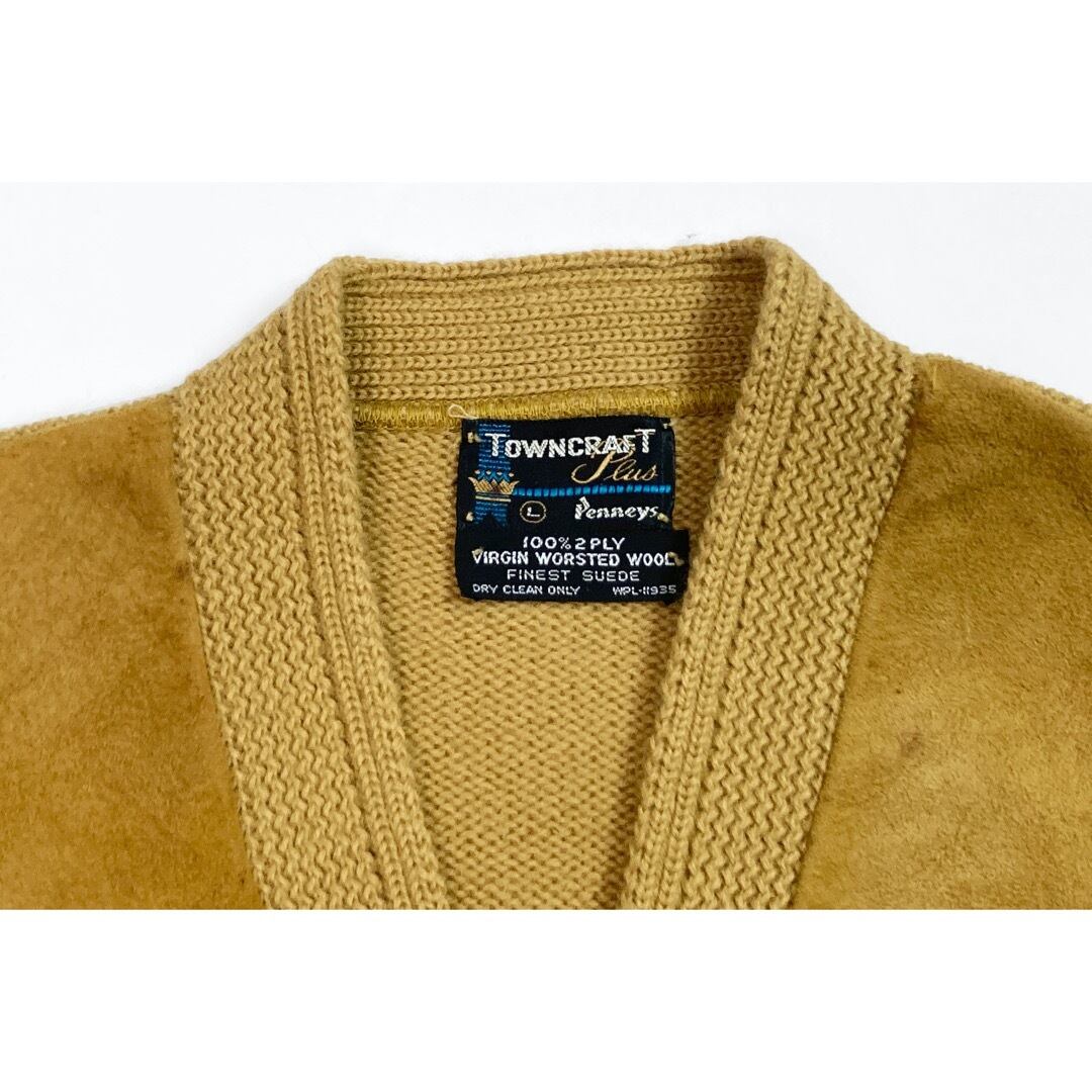 60年代のタウンクラフトのカーディガンになります。マスタードカラーのウールボディに、フロントはスエードの切り替えなりなったデザインです。