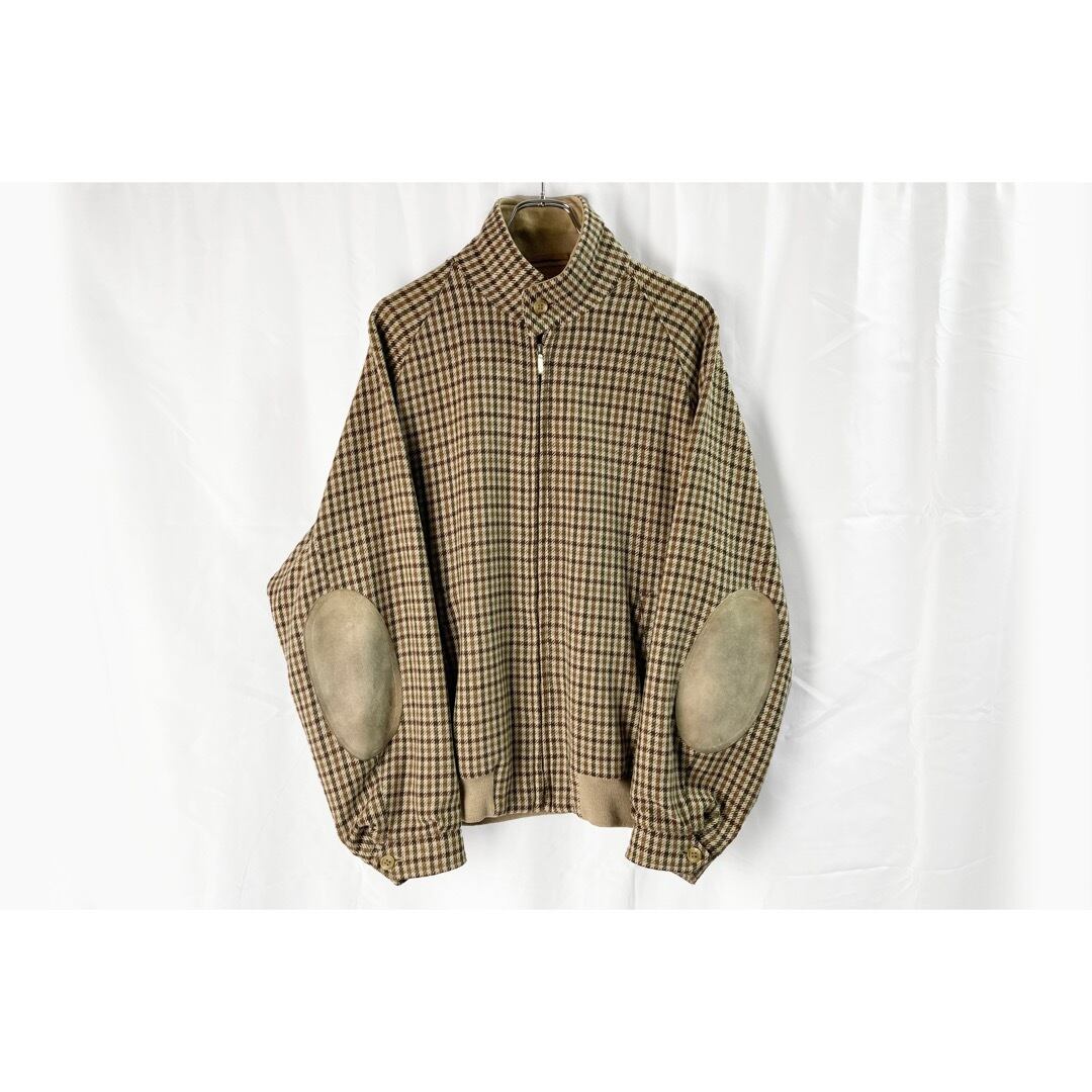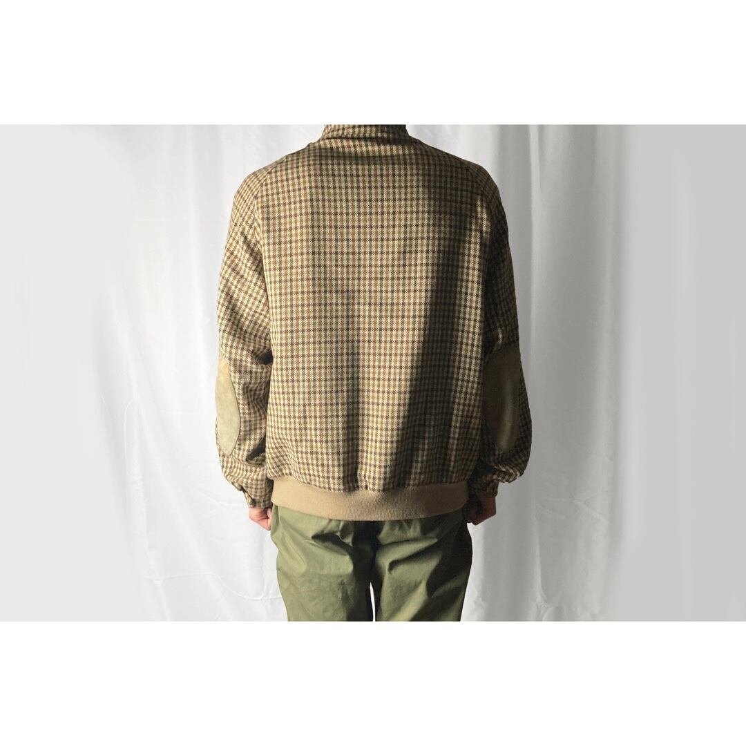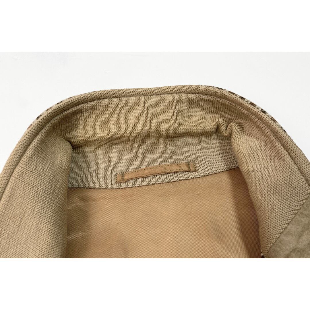 首周り黄ばみ、エルボーパッチに汚れ。裾リブに一箇所小穴あり。写真をよくご確認の上ご購入ください。