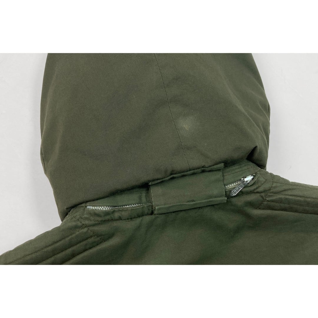 前合わせはAEROジッパー。欠損しがちなフード付きで日本人向けサイズ。古いミリタリーウエアを連想させる素晴らしい佇まいです。
