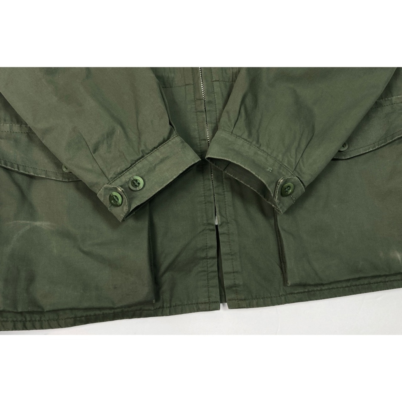 全体ややスレ、汚れ。サイドポケットに小傷。左の袖先のボタン1つ欠損あり。まだまだ問題なく着用いただけるかと思います。写真をよくご確認の上ご購入ください。