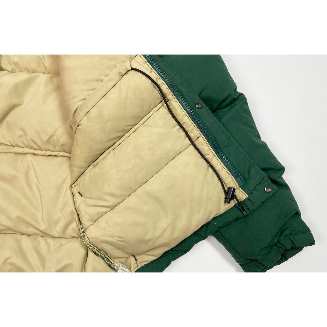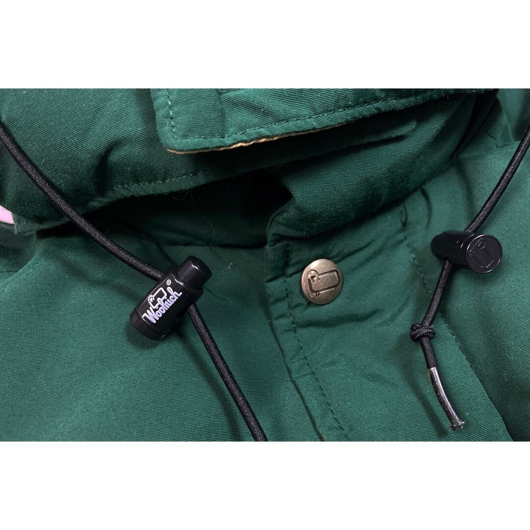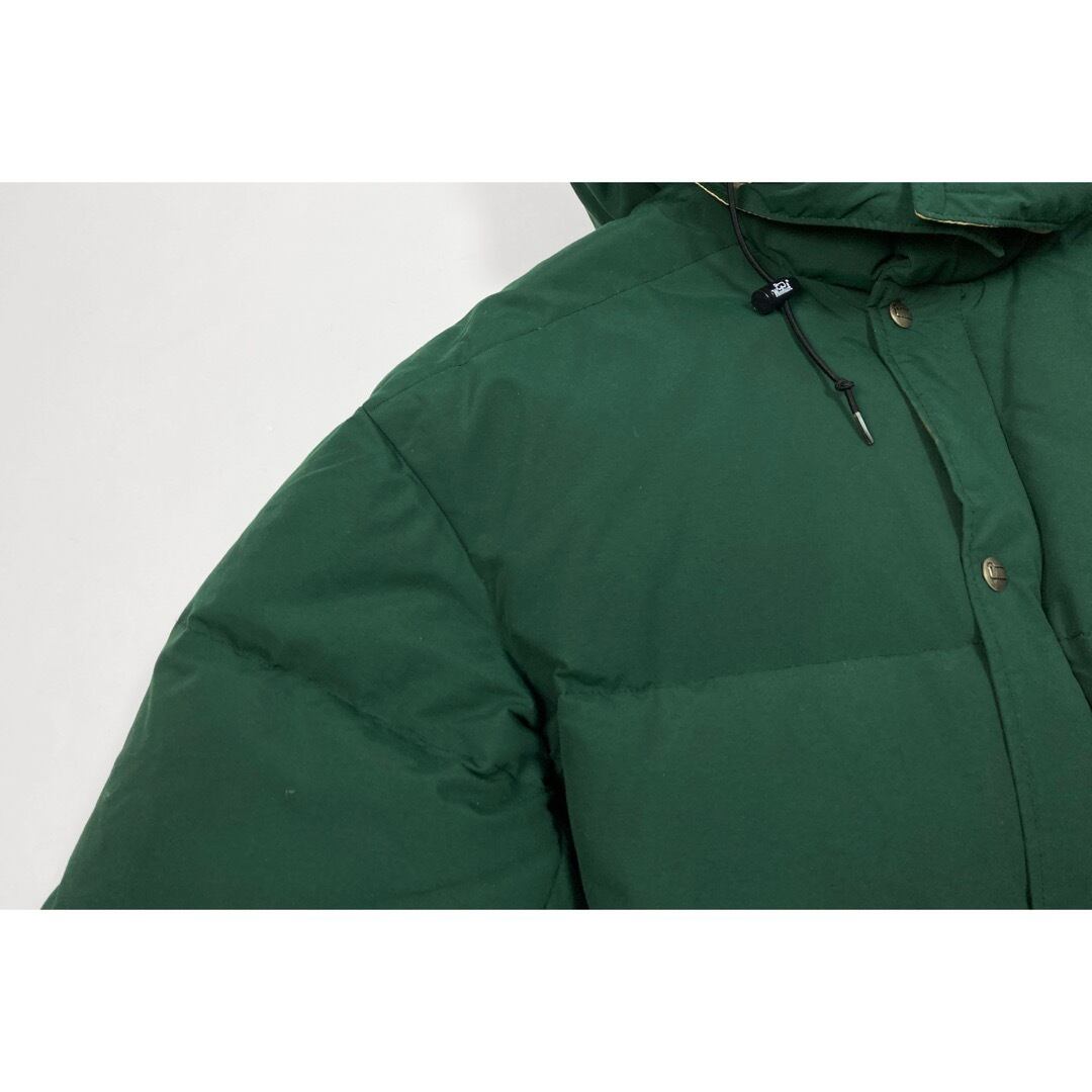 80年台のウールリッチのグリーンのダウンジャケット。しっかり詰まったダウンで非常に暖かいです。取り外し可能なフード付き。