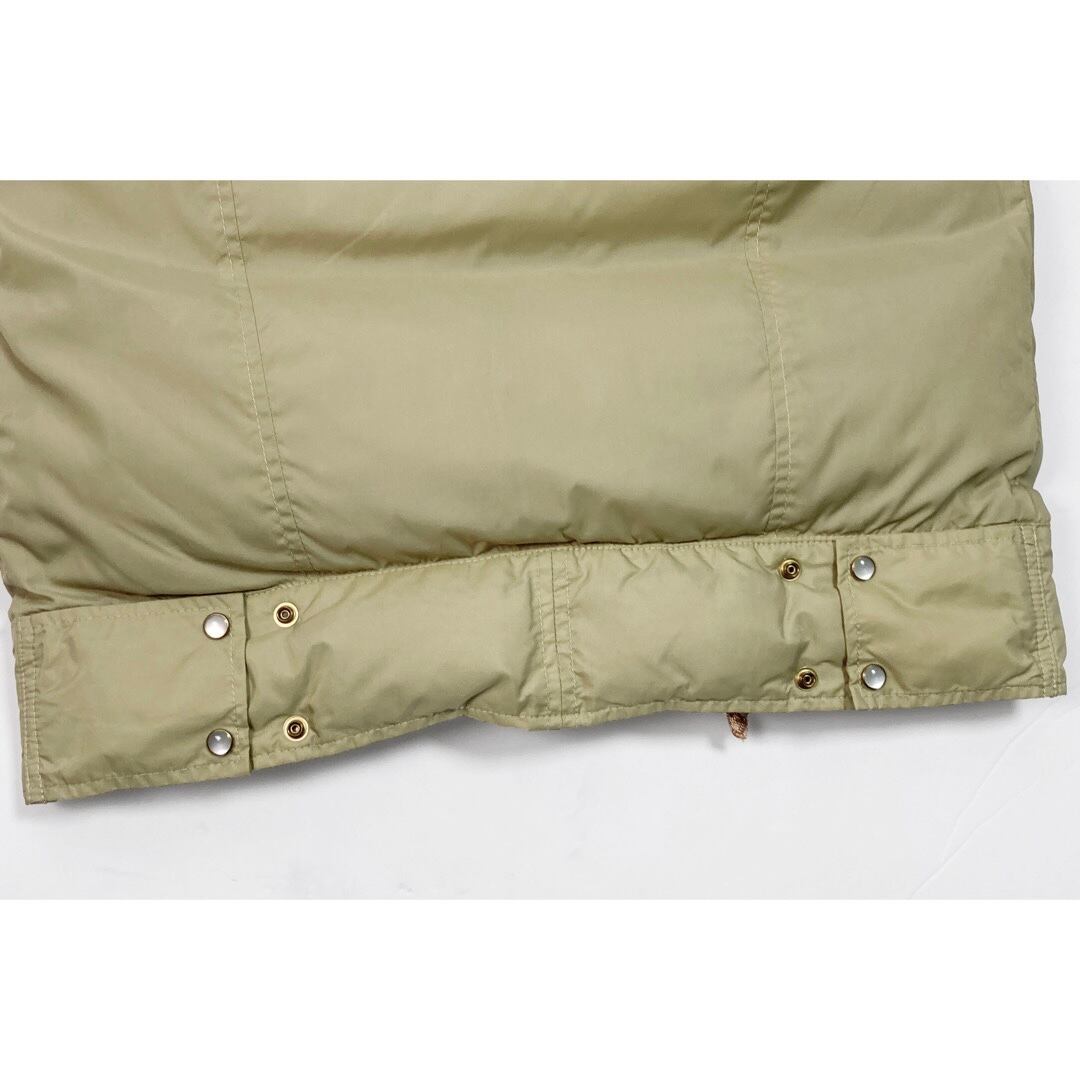 ハリのあるライトベージュのナイロンボディにレザーヨーク。フロントはYKKジッパー、裾にはドローコード付です。