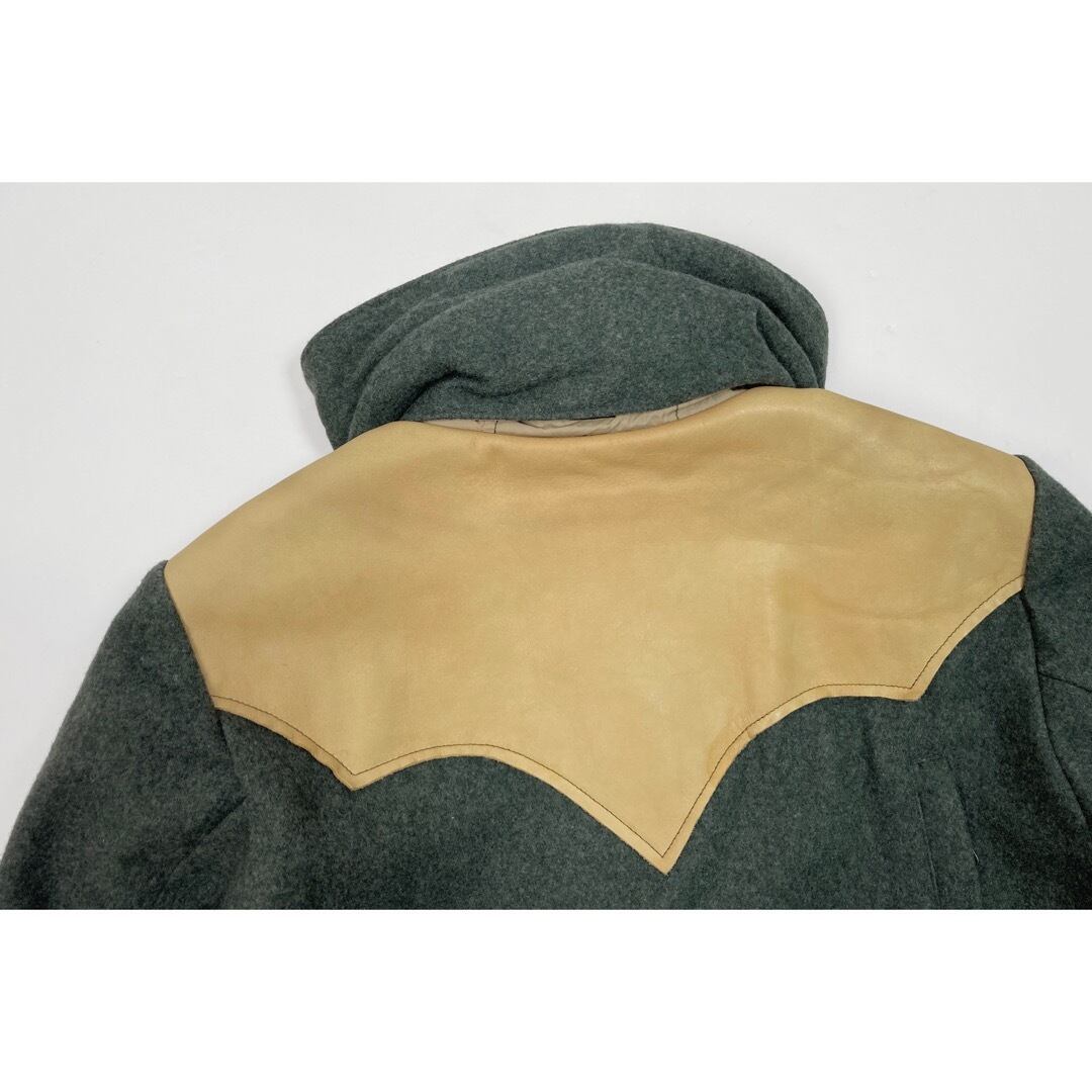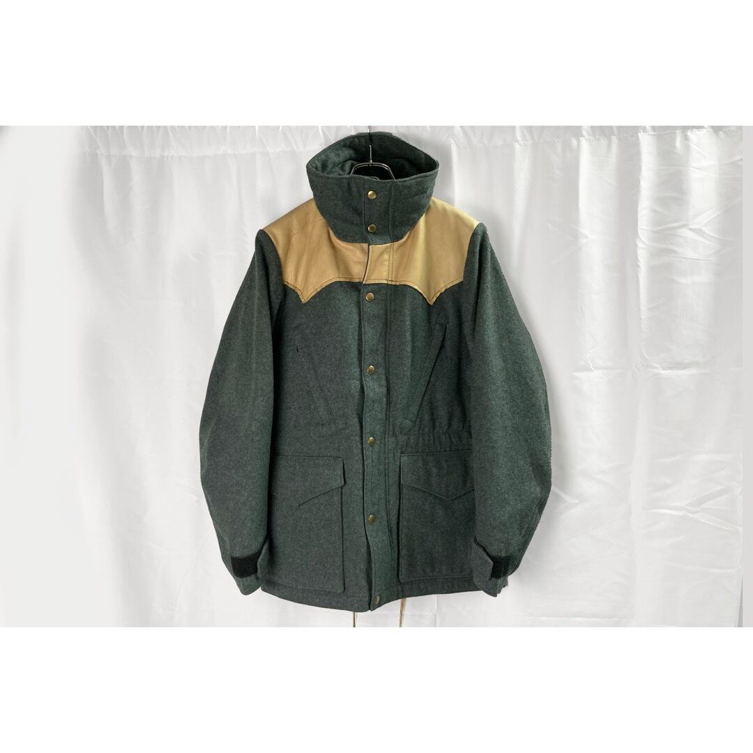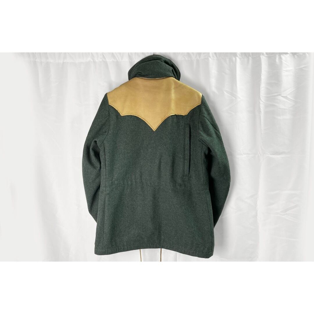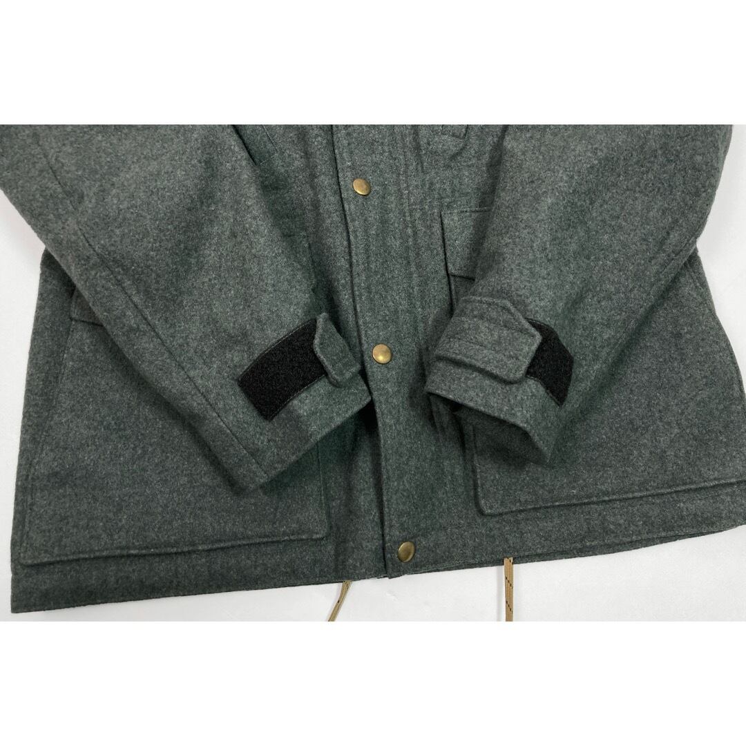 オリーブグレーの圧縮ウール地を使用したRocky Mountainのマウンテンパーカ。フロントはYKKジッパー、裾にはドローコード付です。