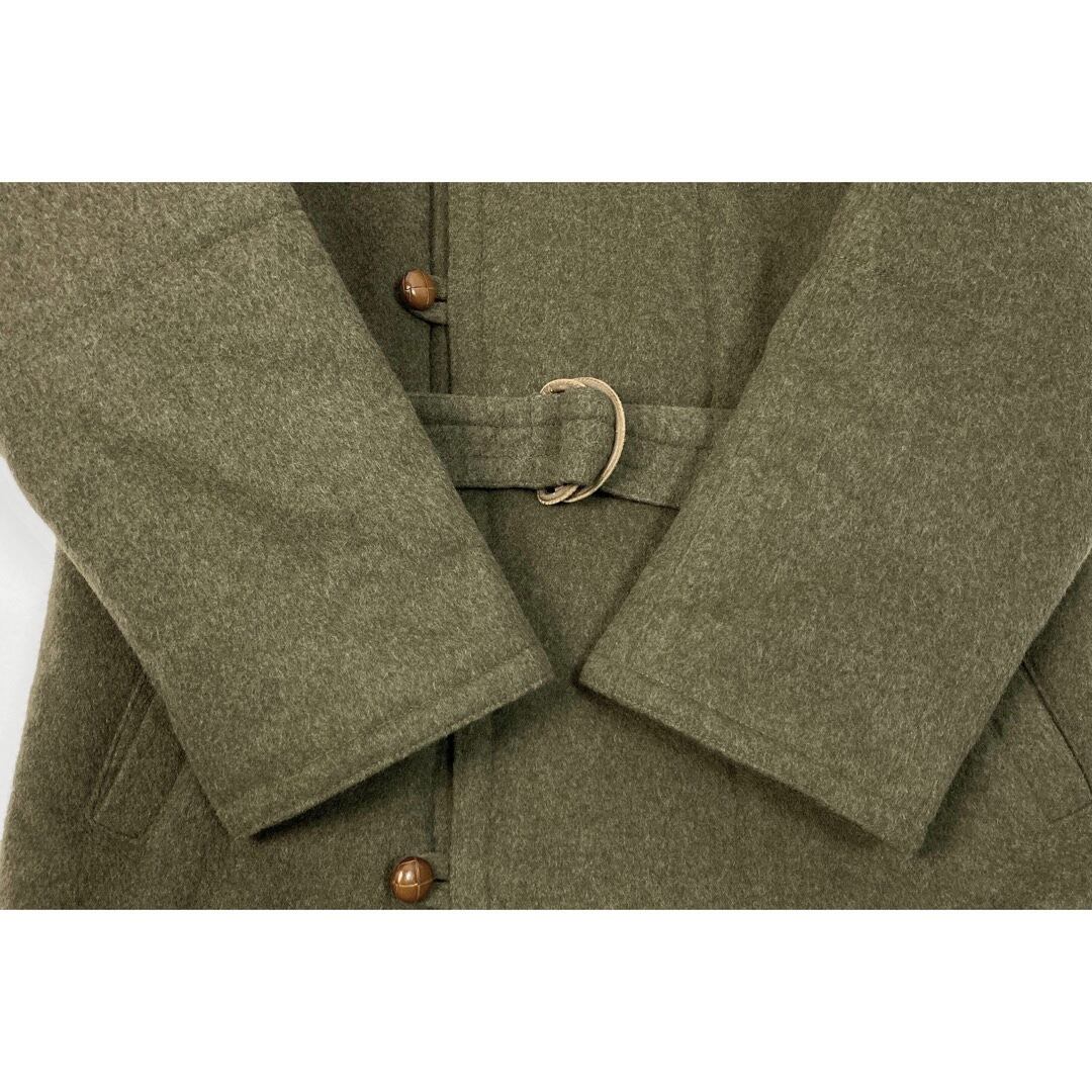 リブ素材の襟、バスケットボタン、ウエストベルト付き。防寒性はかなり高いですが、デザイン的にもとても気に入っています。
