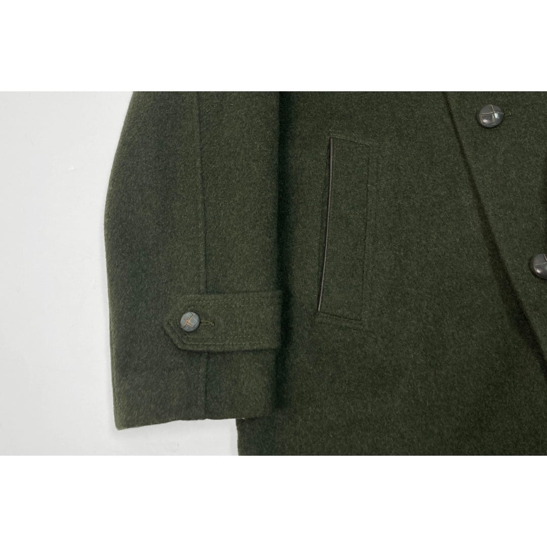 生地は強い縮絨を施した厚手の紡毛素材ローデンクロスを採用。ローデングリーンで、目の詰まった、防水性・防風性に富んだ生地。
